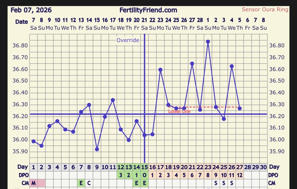 En kyl itsekään mihinkään ryöpsähdyksiin usko. 😅 Mut tosiaan hedelmällisyyslääkäri vahvisti ovulaation tapahtuneen ja itsekin näin follikkelin ennen ja sit kadonneen follikkelin. Ja tosiaan ovulaatio-oireet oli tosi voimakkaat. Luotan kyllä ammattilaisen arvioon, vaikka voihan tosiaan olla, ettei follikkelissa ollut munasolua. Puhjennut se on joka tapauksessa ja lh-piikki oli selkeä sekä estrogeenin kohoaminen sitä edeltävästi. Voi myös olla, että Oura vain mittaa epätasaisesti — tosin ihan näin sahaavaa ei oo koskaan ennen ollut.