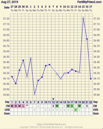 Onkos täällä vielä ketään? Tuossa tämän kierron käppyrä, liuskat vähän epäselviä mutta plussa ehkä viime perjantaina ja limat tukisi ajankohtaa. Takana pari päivää flunssaa, joten lämmönnousu voisi selittyä sillä, tulkitsisin tämän aamun laskun jälkeen että lämpöjen mukaan ovista ei olisi vielä tapahtunut. Vähätkin limat kuivuneet, ovistestit haalentuneet ja FF näyttää punaista valoa. Miten tähän nyt pitäisi suhtautua?