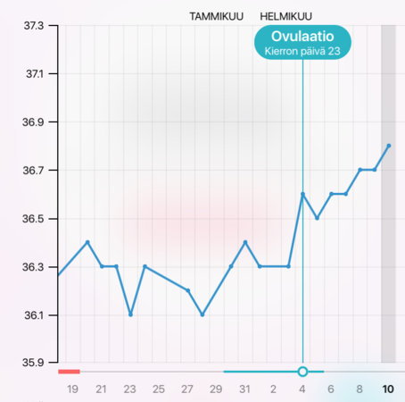 Tämä näyttää hyvältä kans :)!Mulla Flo ennustikin että ovis olisi myöhästynyt viikolla.. Ja lämpökäppyrä on jotenkin selkeämpi kuin muissa kierroissa.
