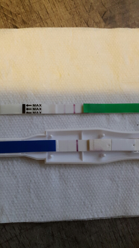 Ja tänään tein sitten vielä huvin vuoksi yhden r-testin ja ovistestin, että sain ne kaapeista pois. Ja ovistestiin sain hymynaaman ! :) Eli siitä voisi päätellä, ovistestin näyttävän myös raskauden.