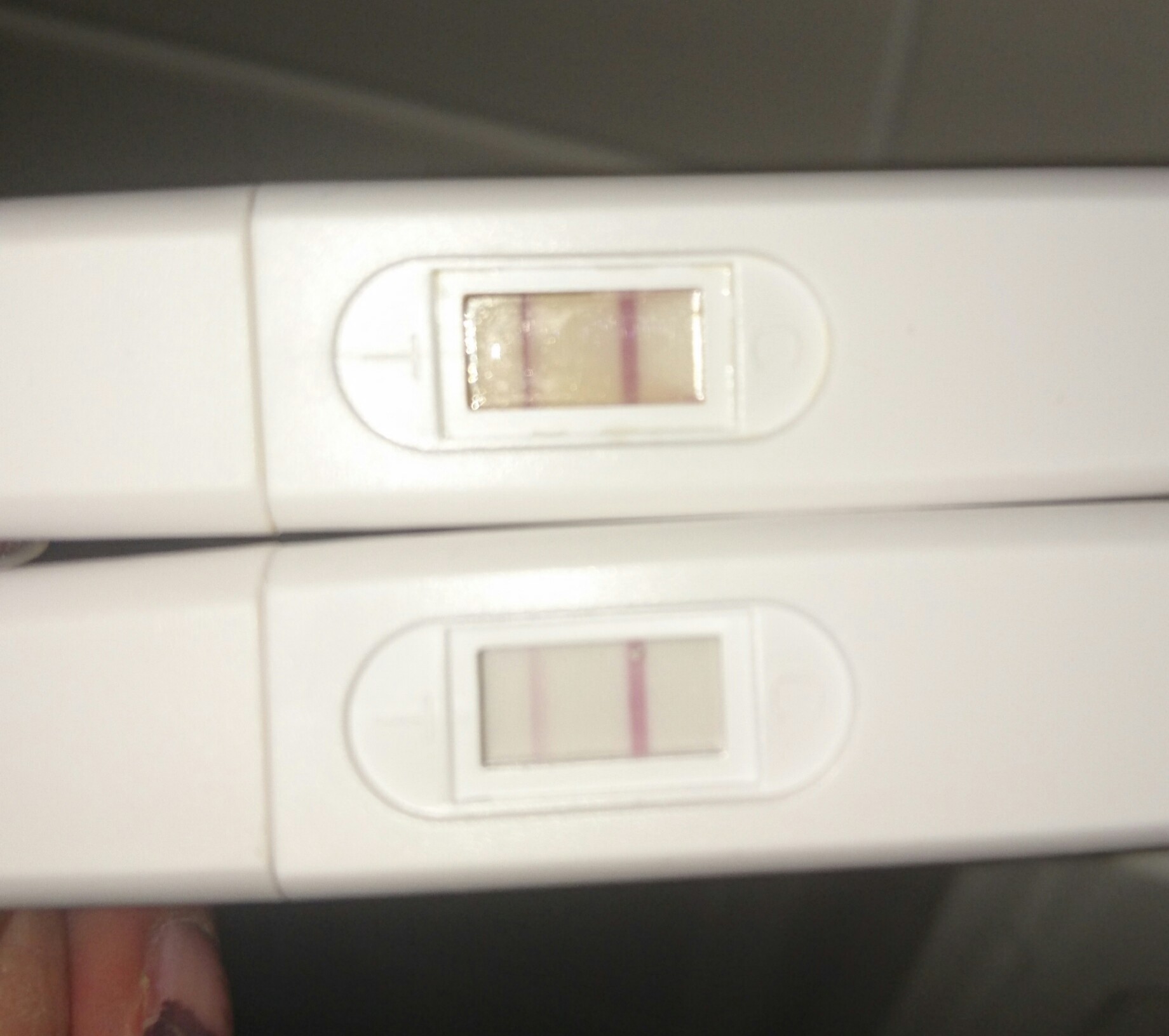 Joskus se saattaa se lh nousta ja laskea, ja jos stressaa ihan hirveesti sitä ( alitajuisestikin) niin se saattaa jäädä välistä. Toi eilinen näyttää yhtä tummalta kun kontrolli viiva? Sillonhan se on positiviinen.