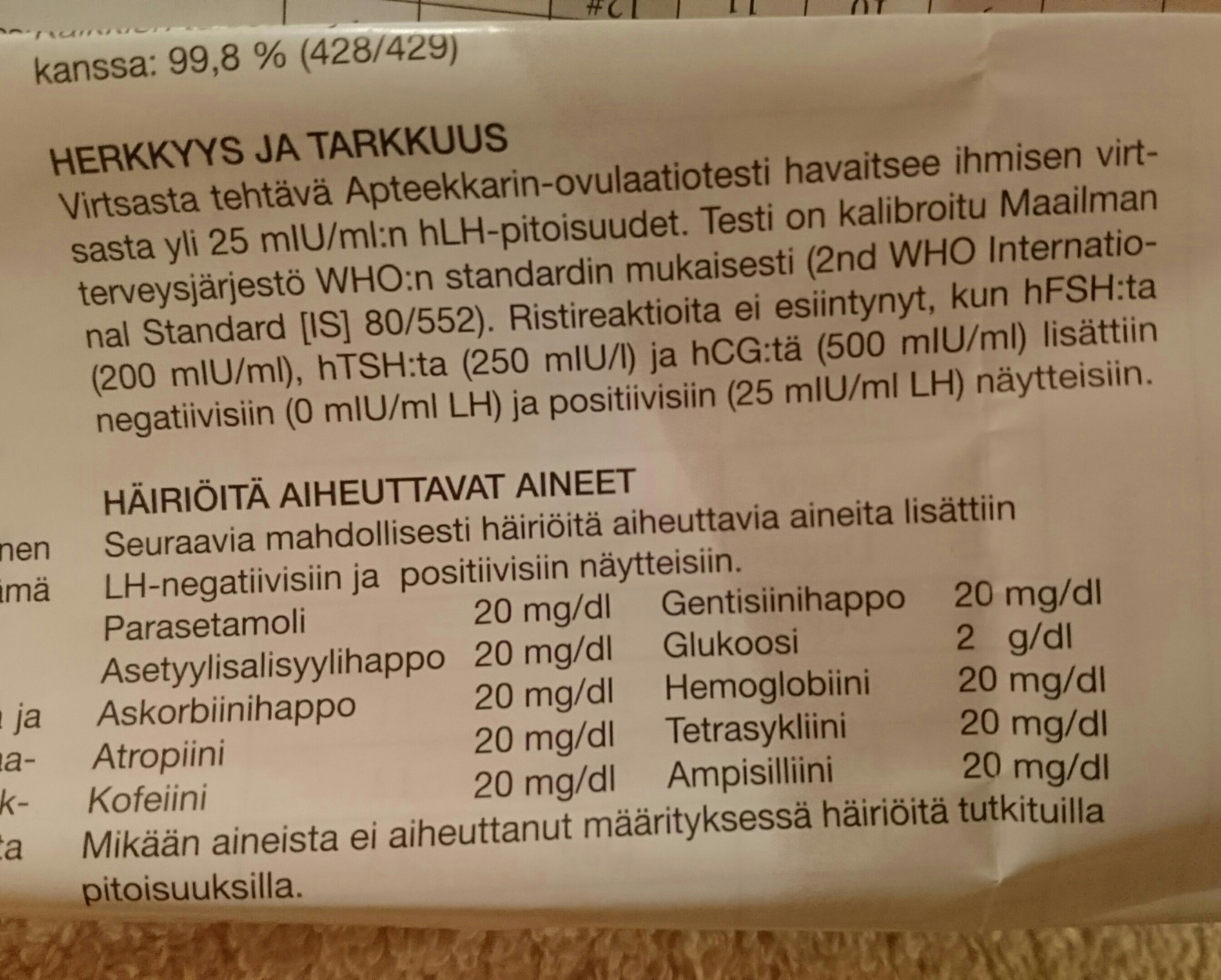 Vaapukkamaa tuo pinkki on joku apteekin oma ovistesti :) en oo ku yhen sellasen tehny aiemmin ja sillon ainaski näytti nii negaa ku olla ja voi eli ihan luotettavana pidän. mullakaa ei oo tohon tallessa sitä lappua et kuinka herkkä toi on muy nyt näyttäs et samaa luokkaa ku noi raskauskeijun liuskat :)