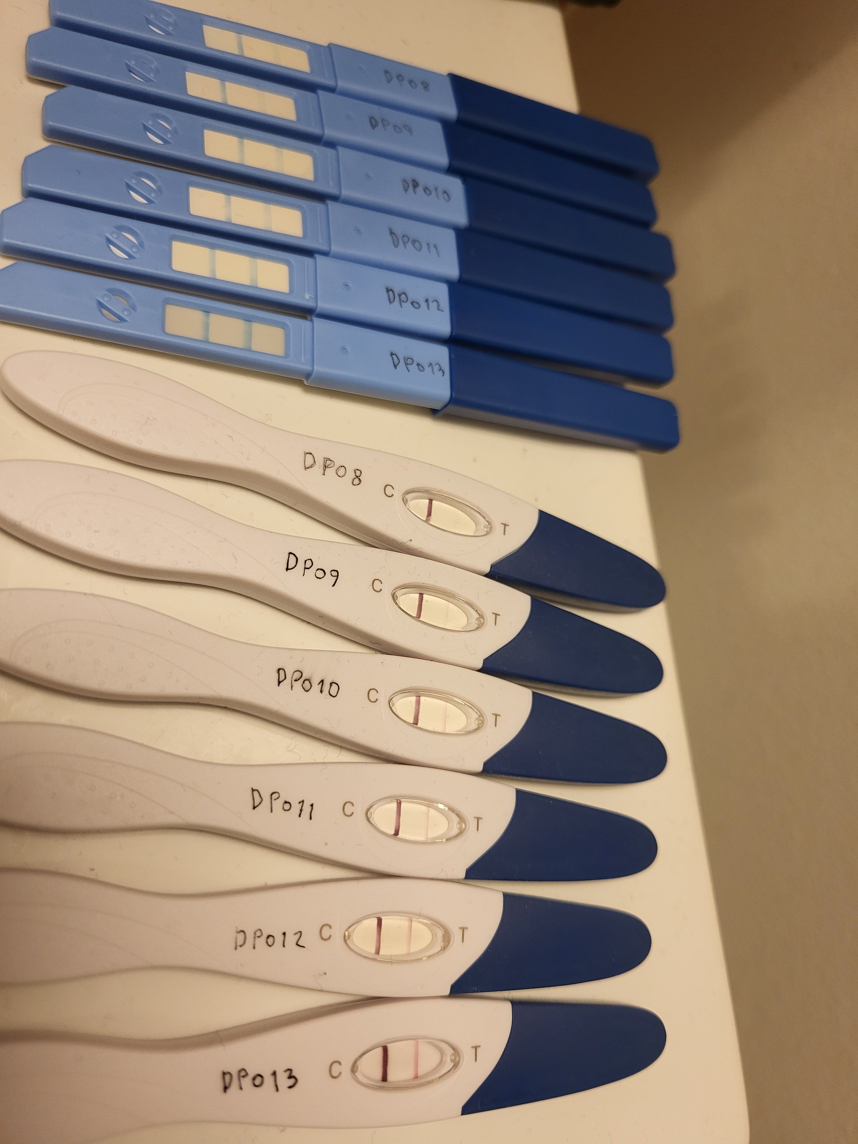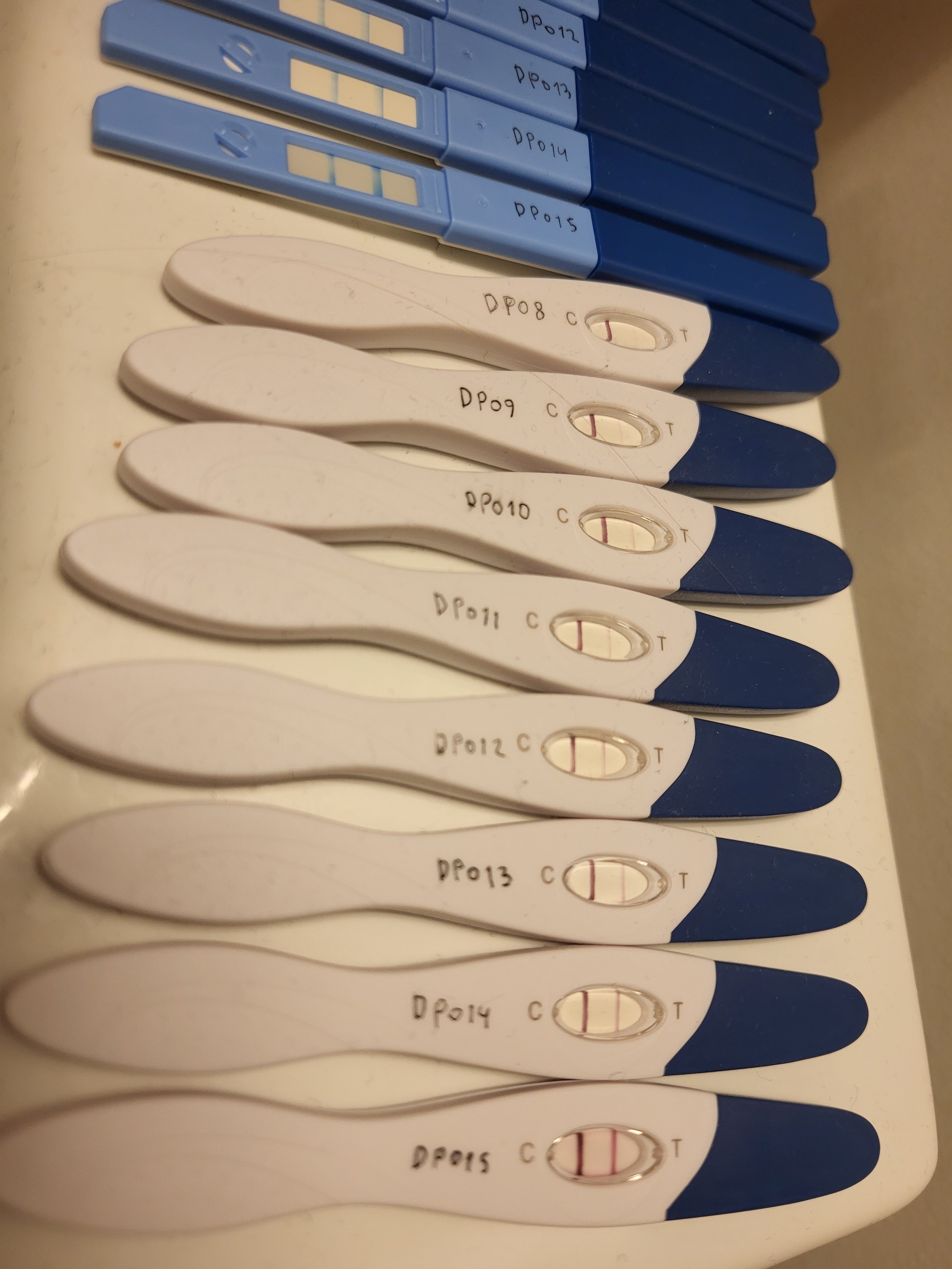 Näin unta, jossa tein useita positiivisia raskaustestejä. Olin todella huolissani, koska olen syönyt letroja (sikiötoksinen lääke) tässä kierrossa. En ehtinyt kellottaa testejä, koska tein niitä kokoajan enkä tiennyt mitkä olivat testiajan jälkeen tulleita viivoja ja mitkä eivät. Kaikissa oli viiva kuitenkin. Muutama palstalainenkin oli minua siellä (olimme jossain hiihtokeskuksessa 🤣) auttamassa ja tavaamassa ohjeita.