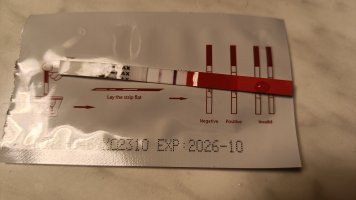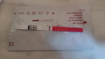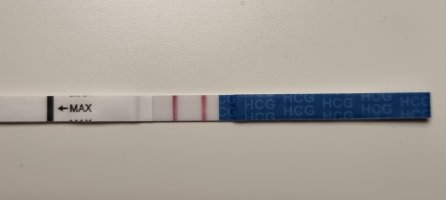 Tänään 4+2 ja rfsu testi näyttää tällaista viivaa :) toissapäivänä aamupissasta samaan testiin vain hailakka viivan paikka.