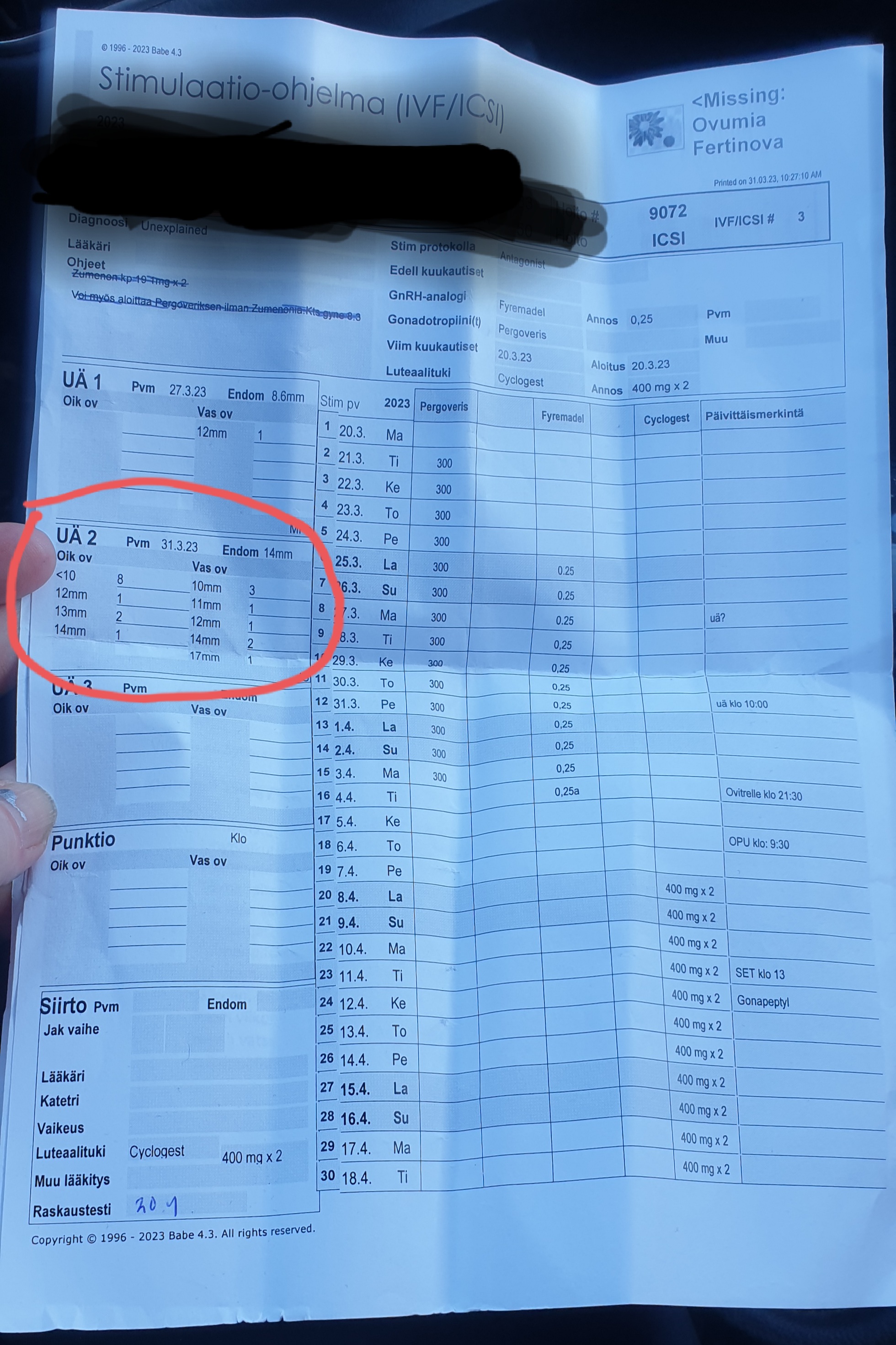 Mutta tosiaan kyllä minä toista viikkoa pistelin buranaa ja panadolia. Minulla oli lupa syödä buranaakin, koska etukäteen oli päätetty, ettei tuoresiirtoa tehdä.