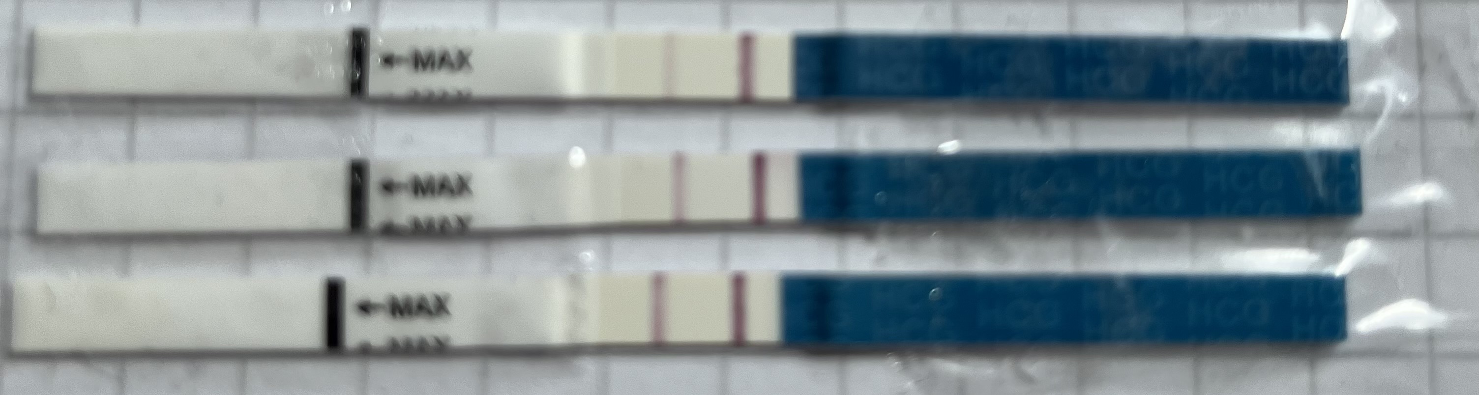 Tein perjantai aamuna testin olettaen sen olevan selkeä nega mutta ei ollutkaan ja nyt olen testeillut joka aamu ja viiva on tummentunut. Todella hämmentynyt olo kun en ole aikaisemmin koskaan positiivista testiä nähnyt ja en uskalla iloita tuon verenvuodon vuoksi ja en ole varma onko ollut raskausoireita vai onko oireet johtuneet muusta kuin raskaudesta. Onko muilla ollut vastaavaa ja raskaus sujunut silti hyvin? Liitän vielä kuvan testeistä. Oma mieli heittää vuoristorataa ilon ja pelon välillä ja tunne on epätodellinen että voiko tää olla totta🙈View attachment 145251