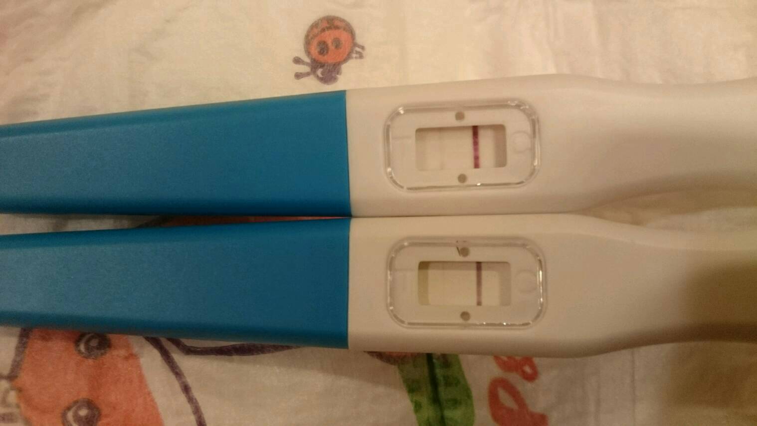 Ekaa kertaa ikin aloin tikutella ovista tässä kierrossa kp 18 muistaakseni. Kp 27 aamulla ovistesti näytti vahvistunutta viivaa, mut ei viel sman vahvusta. Aamupäivällä vielä vahvempaa (yhestä reunasta saman vahvusta) ja illalla tein selvän plussan. Illal tunsin köllötellessä kunnon vihlasun alavatsalla vasemmal puolen. Hieman tuon jälkeen talleteltiin..