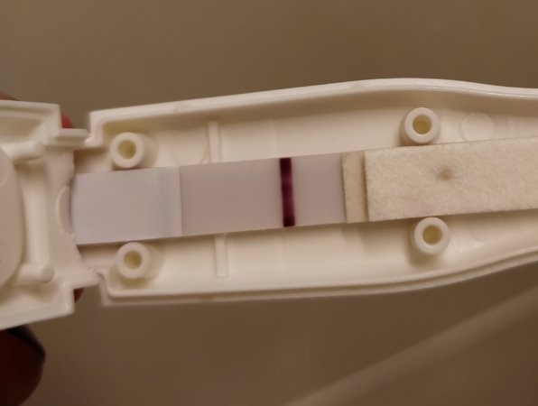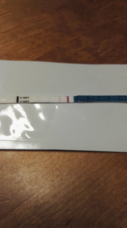 Ei edelleenkään tiputtelua ja testi jälleen nega. Tai oikein tarkkaan kun tiirailin, niin siinä testin sivussa näkyi kyllä hieman väriä siinä kohdassa mihin viivan pitäis tulla. En oo aiemmin tajunnut kattoa, että tuleeko siihen kohtaan aina vähän väriä? Kuvaan se ei kyllä kunnolla näkynyt. Kp24/23-26 nyt.