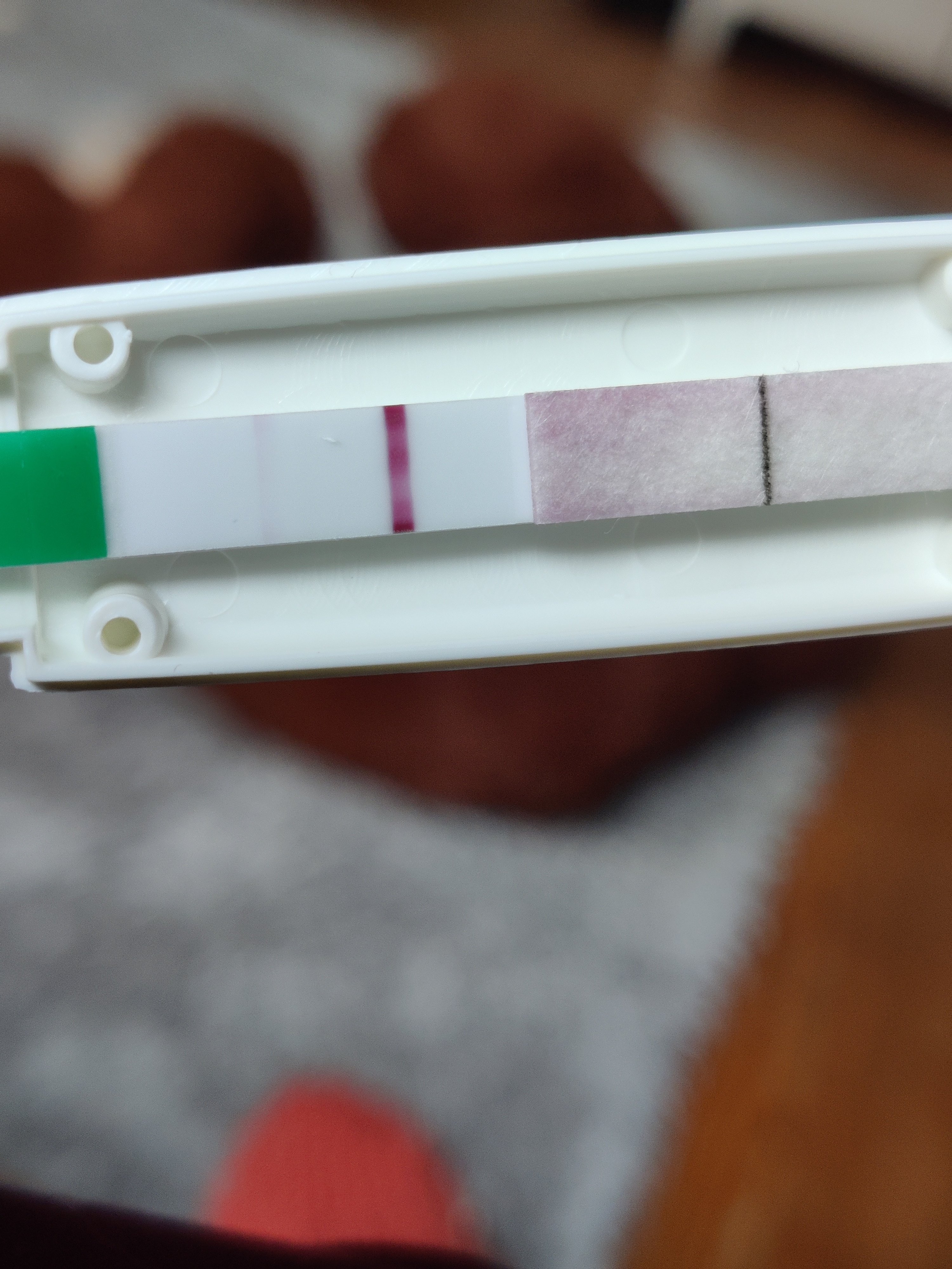 Testi on tänään toissapäiväiseen verrattuna selvästi vahvempi 🥰 tein tänään vielä lisäksi pc:n liuskatestin jossa myös jo näkyy viiva. Kai se on uskottava että raskaana ollaan 🥲