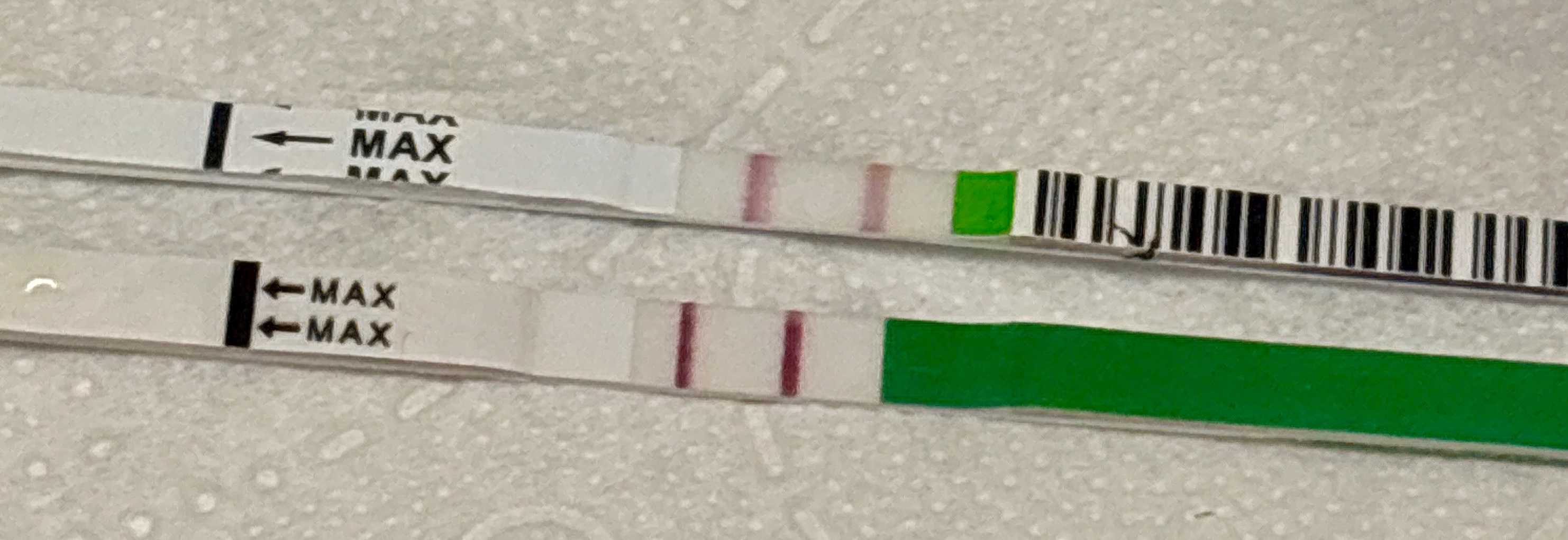 Kp12 dpo-1 Lepolämpö 36.2°. Ovistesti vielä aamusta nega, mut aika hyvin jo väriä testiviivassakin. Vetisyyttä hieman havaittavissa, mut ei mitenkäön runsain mitoin. Katsotaan mitä iltapäivän ovistesti sitten näyttää 😌