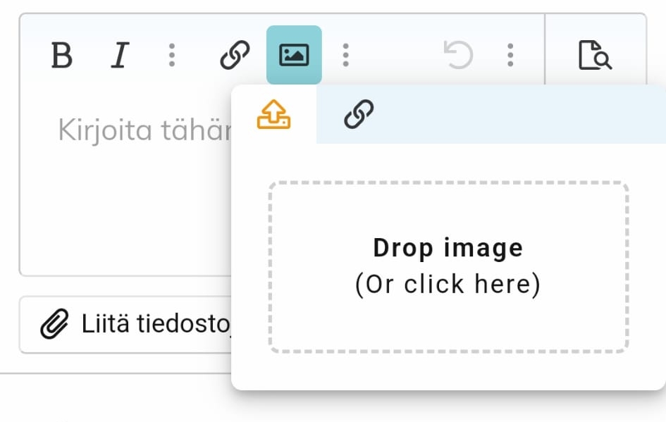 1. Kun olet kirjoittamassa viestiä, valitse viestiboxin yläpuolelta kuvan ikoni.
