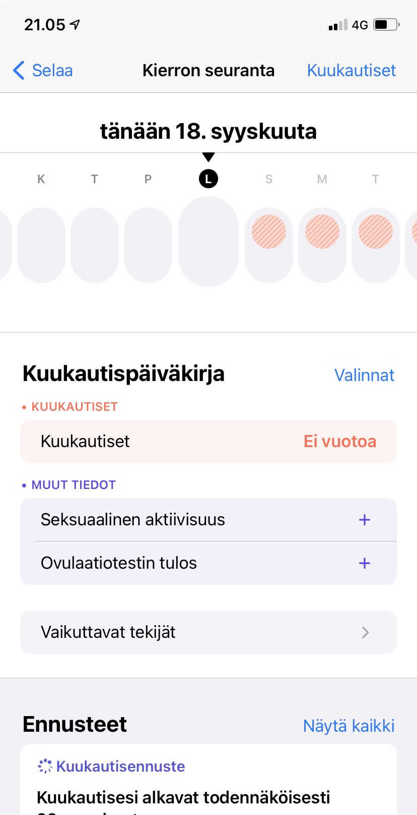 Flo on ollut ennen raskausyritystäkin pitkään menkkakalenterina ja sen takia se näyttää mulla nyt ihan mitä sattuu. Söin pillereitä 3-4 liuskaa putkeen ja Flo ei nyt tajua että kierto olis oikeasti lyhempi ja ovisennusteet on ihan pielessä.