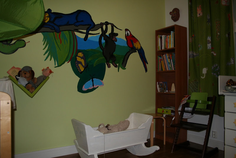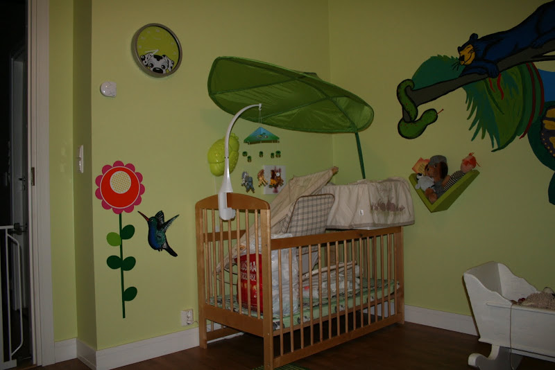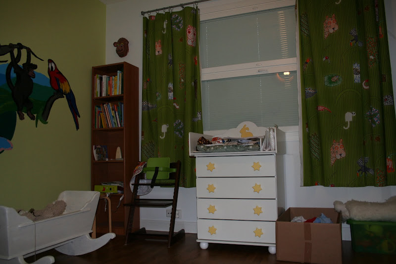 Onpas teillä ihania ja värikkäitä huoneita!! Meillä on hoitopöytä ja pinnasänky alkuun meidän makkarissa ja vasta sitten myöhemmin vauvan kasvaessa sille laitetaan ihan ikioma huone... Luultavasti nukutan vauvaa myös siinä äitiyspakkauslaatikossa alkuun, kun sen saa helpommin siirrettyä huoneesta toiseen yms. jos on tarvis...Mulla on siihen laatikkoon sellaiset äitini ompelemat nätit reunukset, jotka piilottavat koko lootan, ne samat on olleet mulla itselläni vauvana...Kangas on ehkä hieman tyttömäistä (valkoinen pohja jossa vaalean persikan värisiä pieniä perhosia), mutta saa kelvata pojallekkin, kun on kerta äitin vanha!![:)]