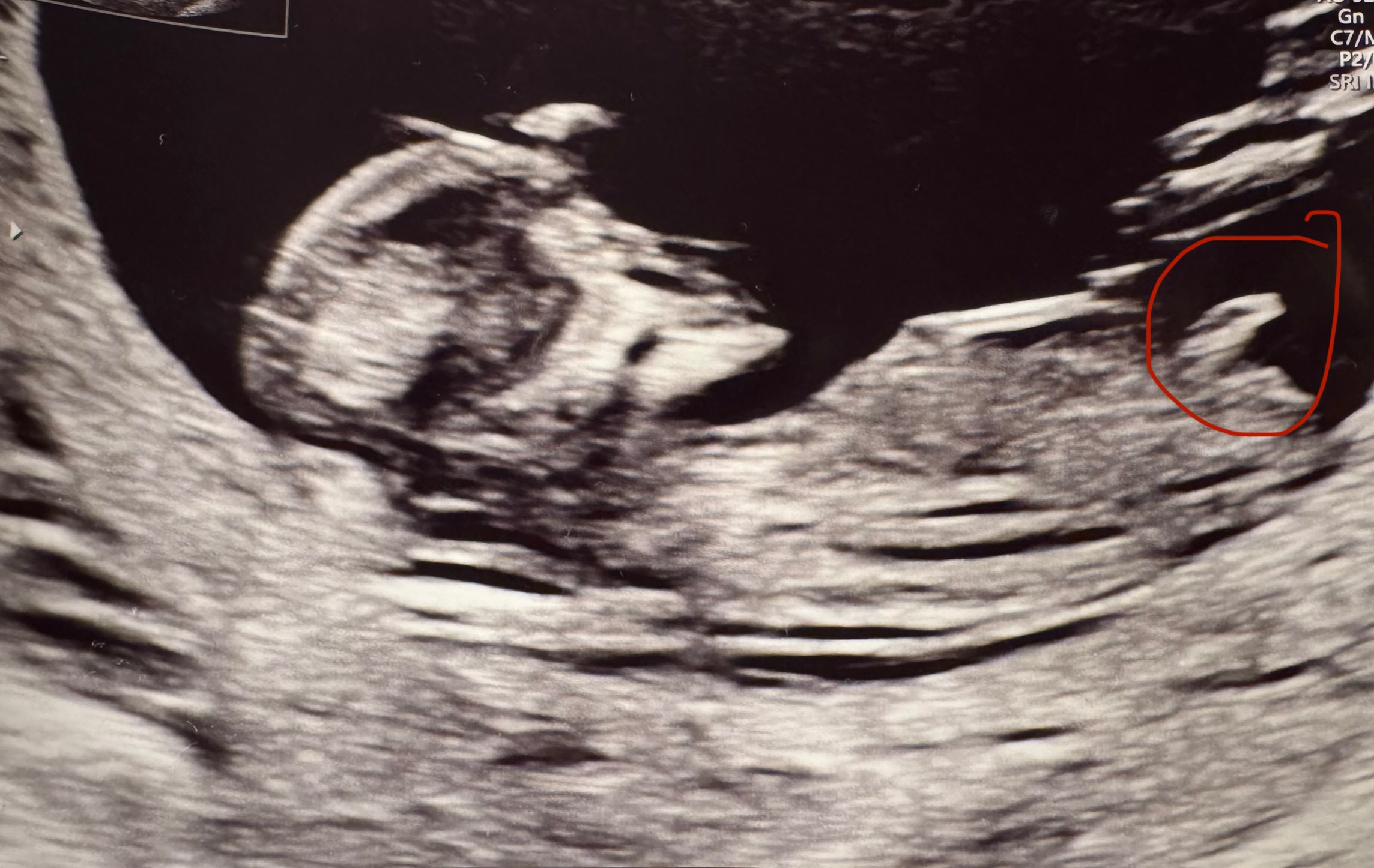 Yleensä aikaisemmilla viikoilla tommoinen nub on kertonut pojasta, mutta koska mä en tavallaan näe tota ihan kokonaisuudessaan en heitä päätäni pantiksi, mutta sanoisin poika.Näkyykö tässä?:)