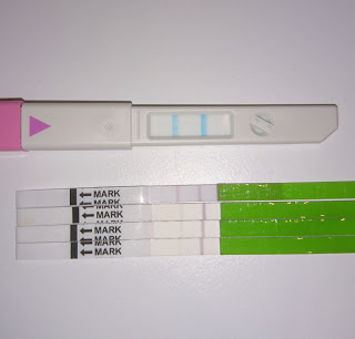 No ei se posti tullu vielä, mutta tein 2,5h pidätyksellä ovis- ja yhen raskaustestin, näytti tältä: