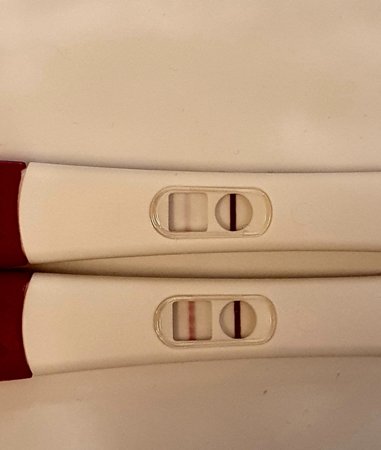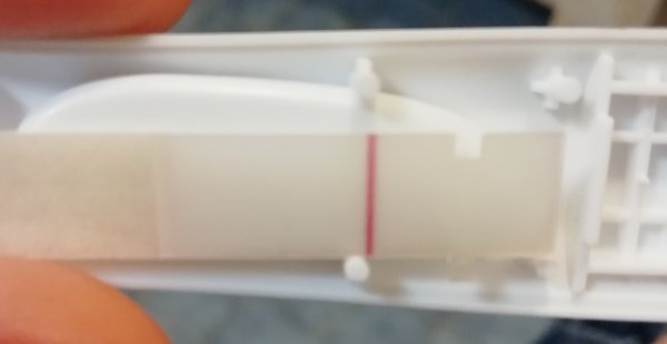 Tein aamulla one stepin herkän 10iu ja siihen sain korkeintaan jonkun ehkä silmin erotettavan viivanpaikan tai esihaamujen esihaamun. Ostin sitten kauppareissulla pregchekin liuskoja, tänään blaston siirrosta pp5 eli alkion ikä 10 päivää ja sainkin suht lyhyellä pidätyksellä tämmösen näkyviin.