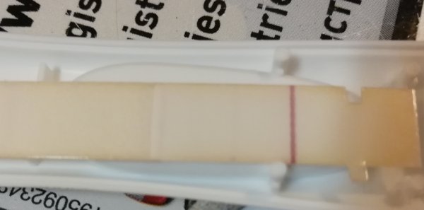 Nyt tulin töistä ja edelleen jotain näkyy. Mutta tuleeko näihin aina viivanpaikka tai joku muu? En oo koskaan tehnyt tällä testillä selkeää negaa, viime kierrossa oli siis kemiallinen ja selkeämpi viiva mutta vasta myöhemmillä päivillä.