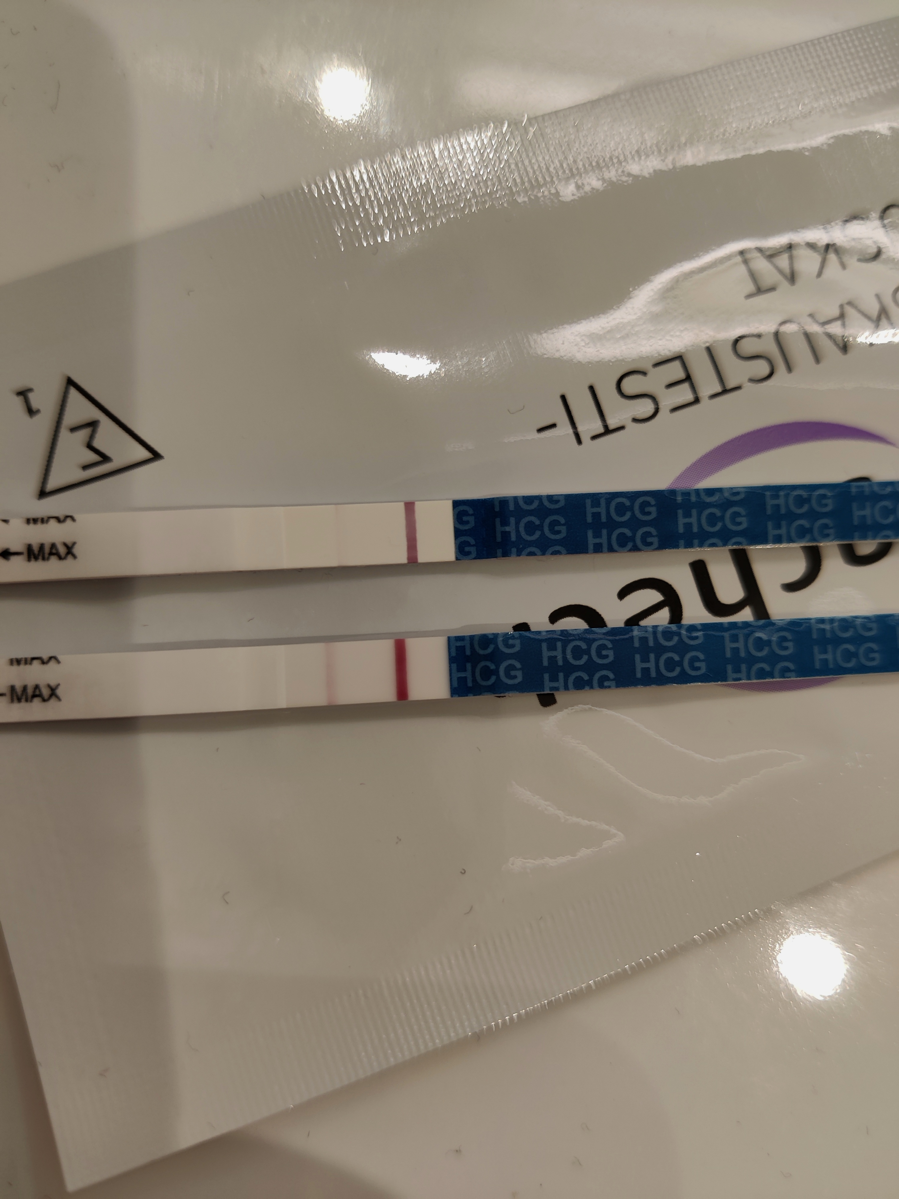 Mutta, mä sain omat ekat haaleista haaleimmat plussaviivat just pp4 ja 5-päiväsen siirron jälkeen. Testeinä tais olla pc liuska, pc puikko ja kotitestiltä tilattu herkkä onestep liuska. Ne raskauskeijun herkät liuskat ei näytä mun mielestä läheskään yhtä hyvin. Pp4 illalla sain liuskaan semmosen haamun et mieskin näki sen.