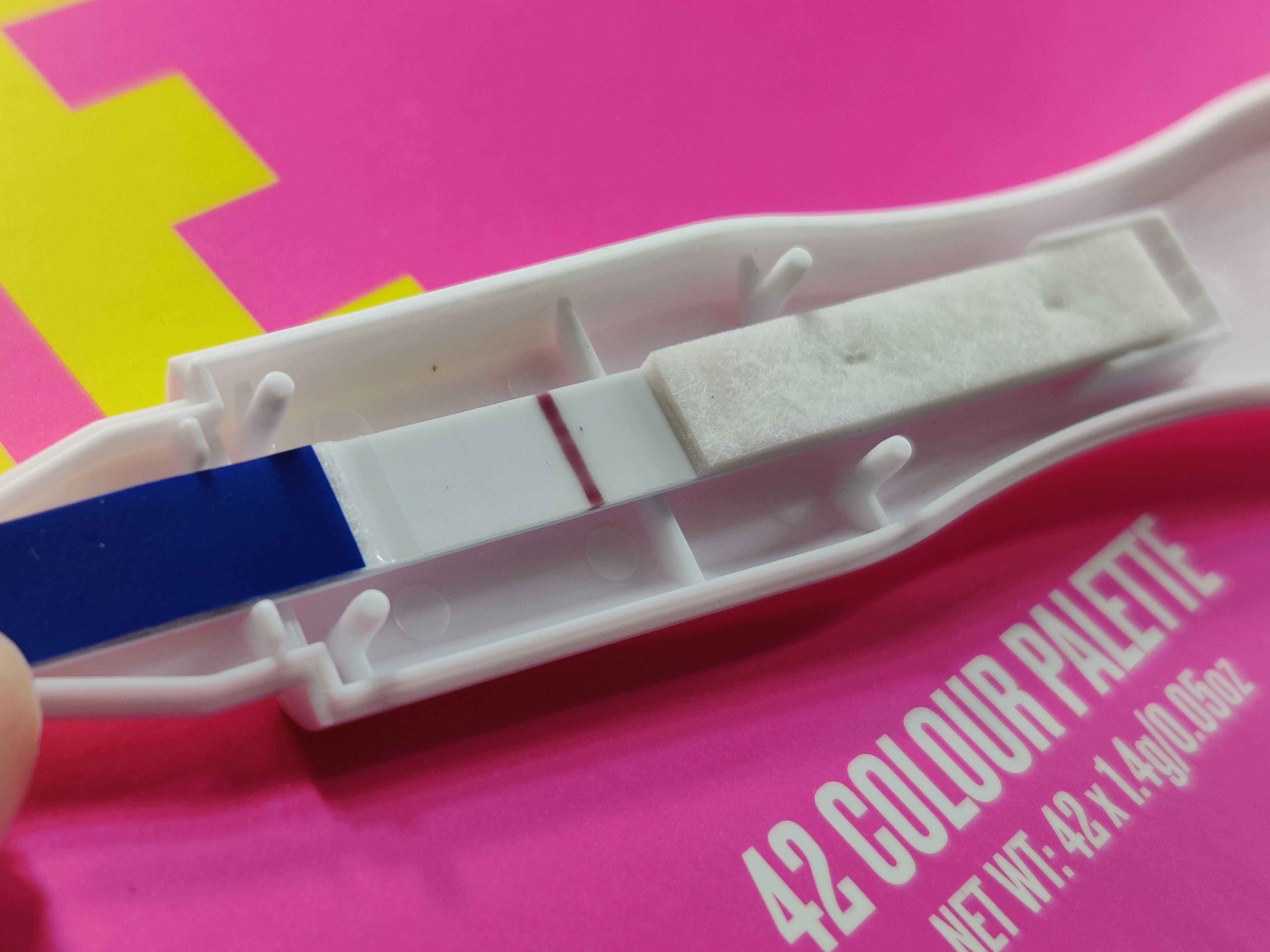 Kyllä tässä ihan selvä viiva erottuu, näyttäis musta haamulta. :smiling-eyes: Olisko sulla voinut ovis olla myöhemmin ja sen takia testit tähän asti negaa?
