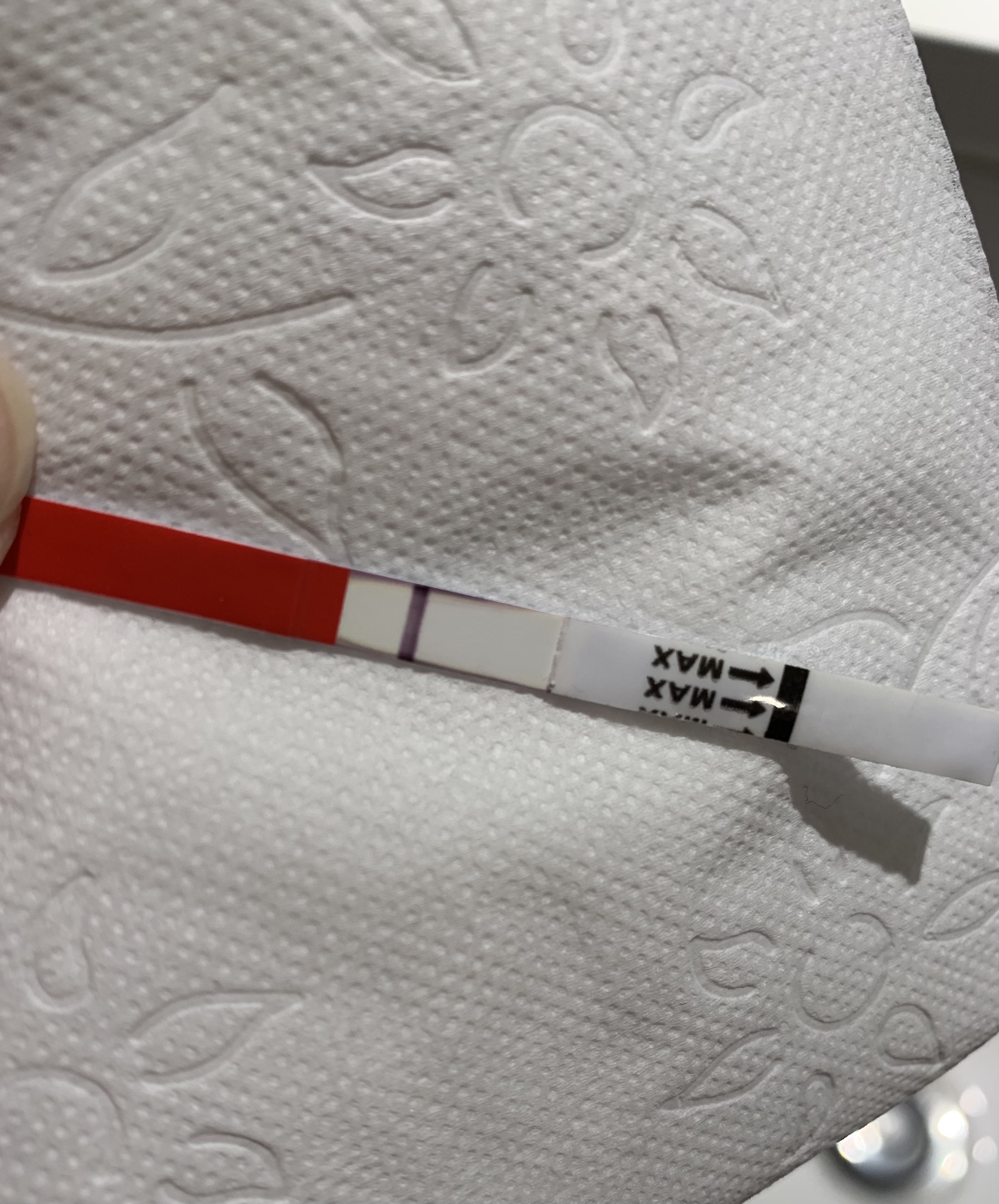 Tein eilen iltapäivällä testin joka hämmentää. Siinä on selkeä haamuviiva, mutta väri on levinnyt oudosti. Toki testaan uudestaan mikäli kuukautiset ei tule parin päivän sisällä. Nyt siis kp27 ja testi tehty kp26 iltapäivällä.