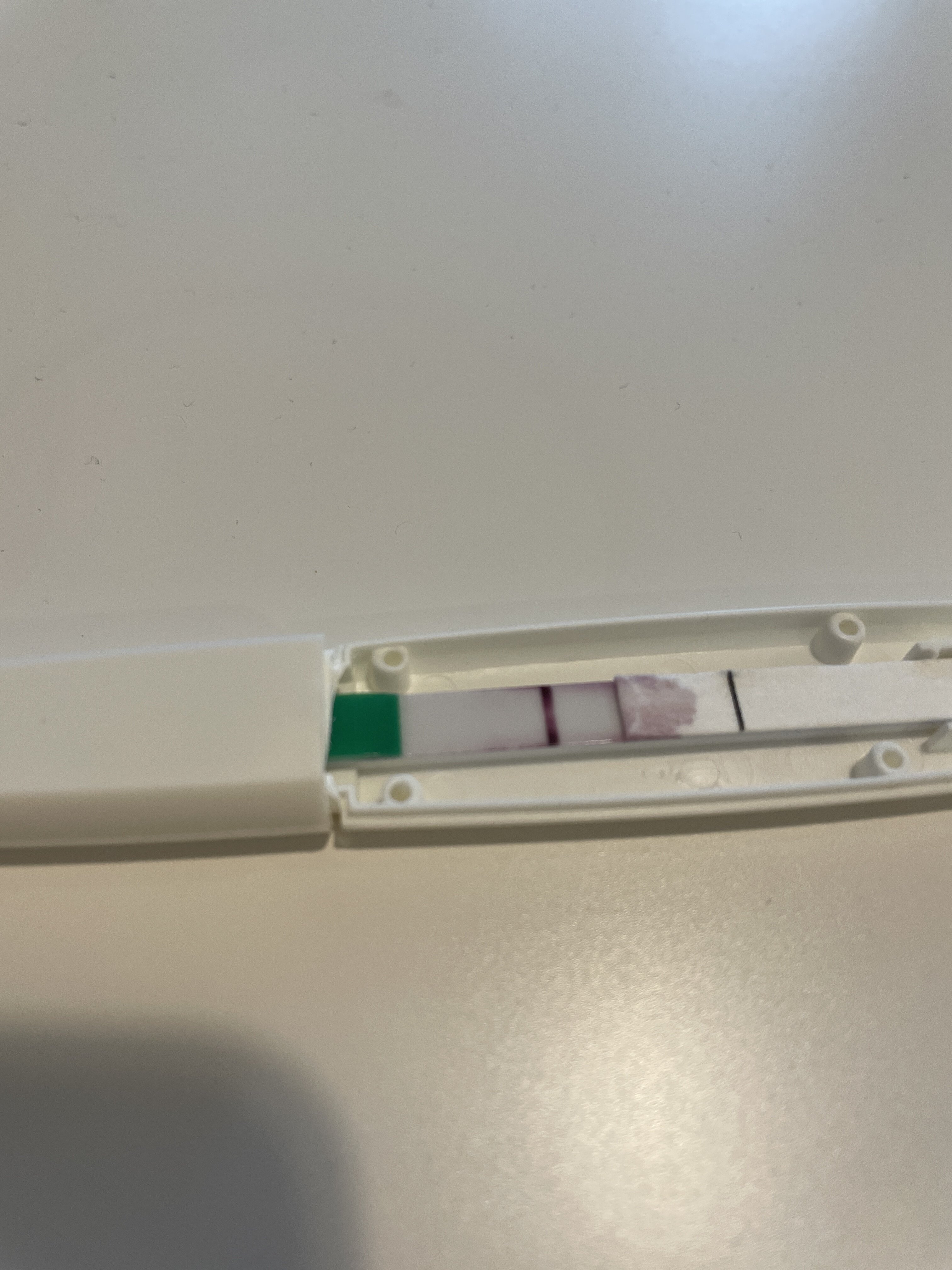 Jos tuo on se "Testaa varhain" testi kuten oletan, se käyttäytyy aina kuivumisvaiheessa noin että antaa olettaa mutta ei ymmärrä antaa. Eli tuon kanssa joutuu odottamaan että kaikki värituhru on haihtunut, se jättää sitten kyllä haamun reilusti vasemmalle jos on antaakseen. Toivotaan haamua joka vahvistuu plussaksi 👍