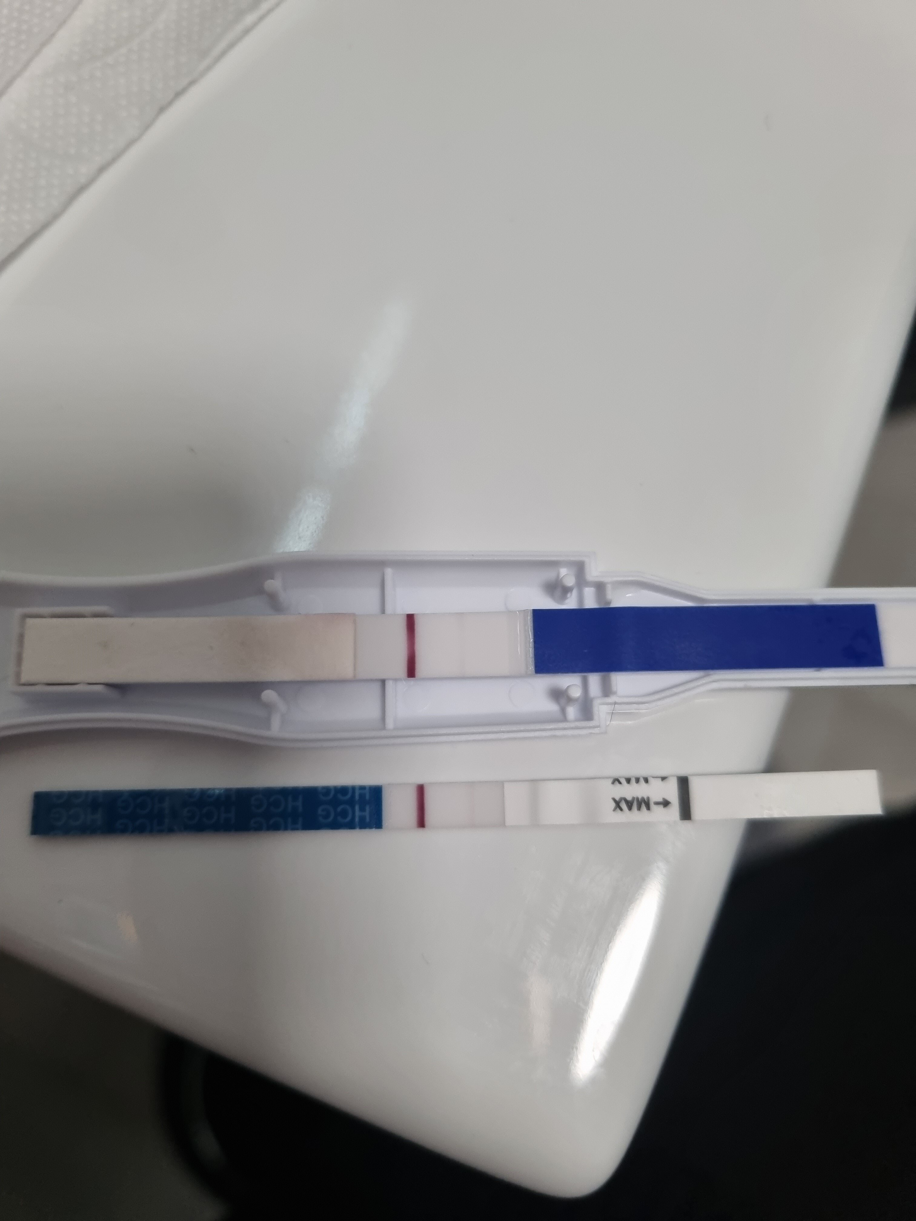 Laitetaans tännekki. Pp10, apteekin ultra testit eilen ja tänään. Näissä törkeät viivanpaikat jo ennen testausta, mut tänään ihanku ois tullu väriä?