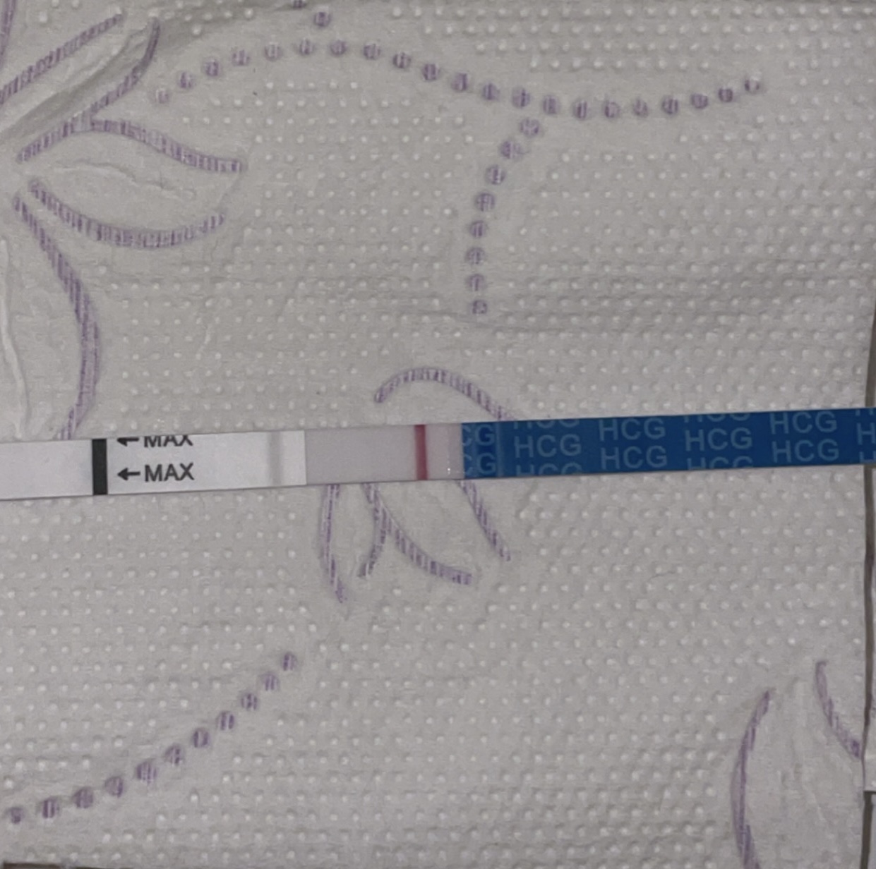 Valkoinen viivanpaikka loistaa ja sen vieressä oikealla on hitusen värikertymää. Parin päivän päästä uusi testi?