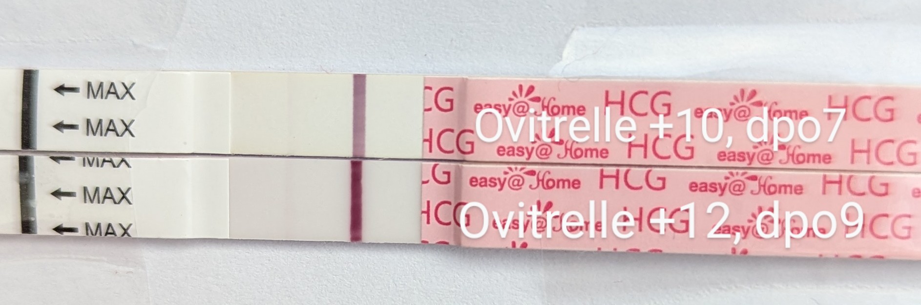 Mulla oli samanlainen oikeassa plussassa +12 pv Ovitrellesta! Negakierroissa ihan nega kyllä jo tuossa kohtaa. Uskon että on oikea plussa! 😍❤️