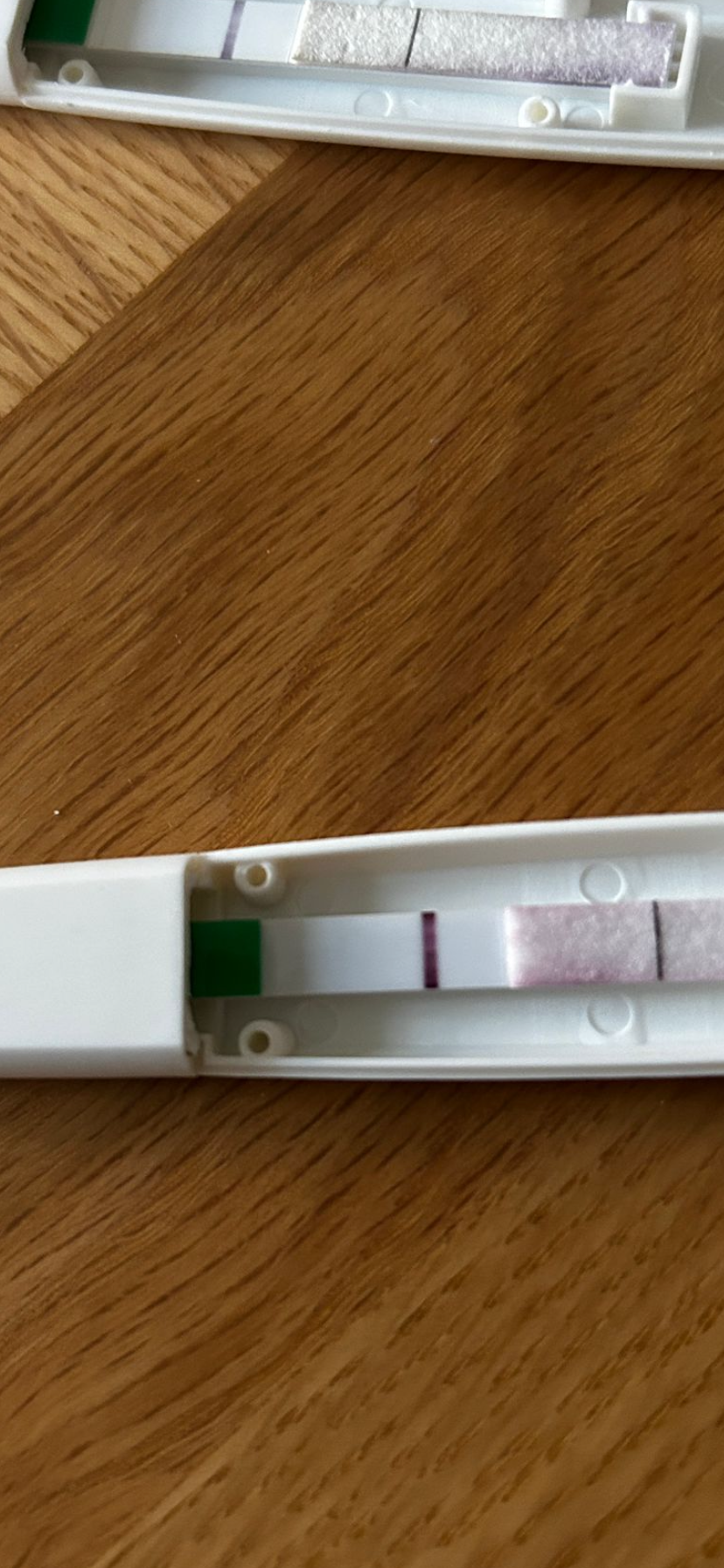 Mietiskelin tässä, että voiko olla, että molempiin testeihin tulis noin vahvat viivapaikat. Heti sillä testiajalla noita viivoja ei näkynyt näin selkeesti, mutta siis kuivuttuaan näkyi 🤔