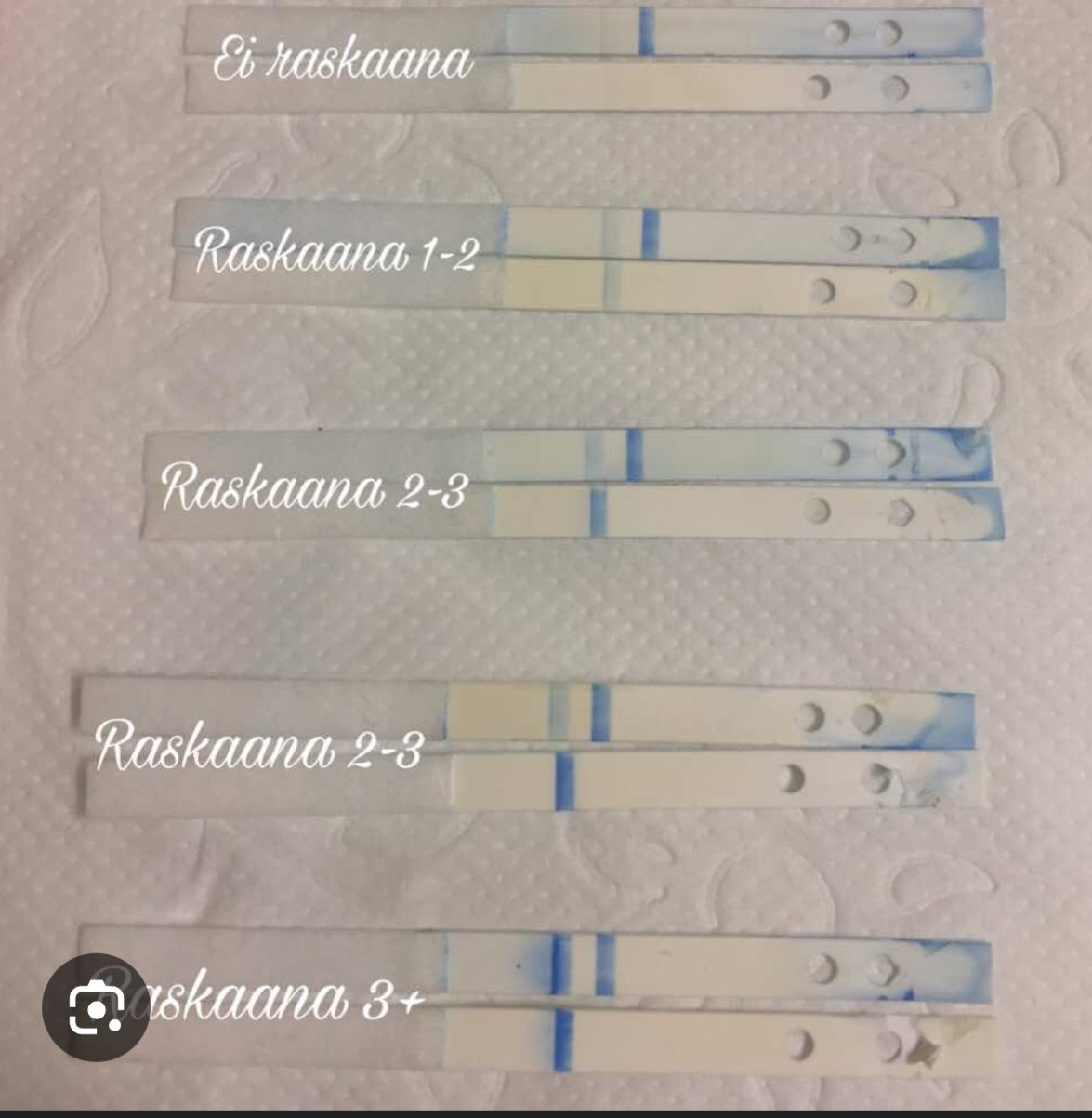 Ja taitaa siellä ohjeissakin lukea, että testi tulkitaan positiiviseksi vain jos viivassa on väriä eli harmaat viivat on viivanpaikkoja.