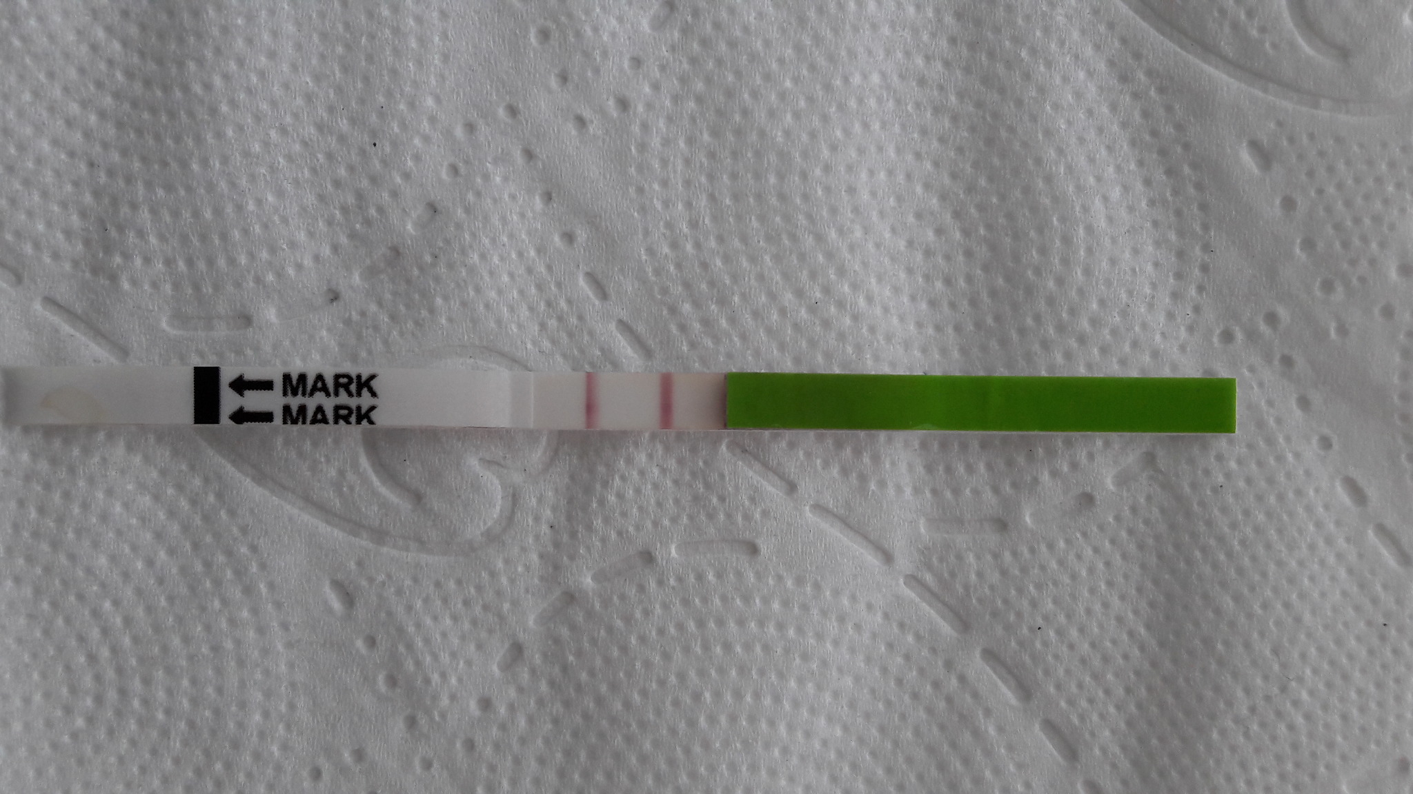 Testasin aamulla uudestaan ja sofin viiva tummempi. Ja ovistesti näytti tältä; tummui vielä kuivuessaan. En luota noihin sofin testeihin ollenkaan ja en nyt tiedä voisiko se muka reagoida ovikseen mutta jää nähtäväksi sitten vissiinkin? Eihän tässä muuta voi kuin ihmetellä ja odotella kuin käy![]()
