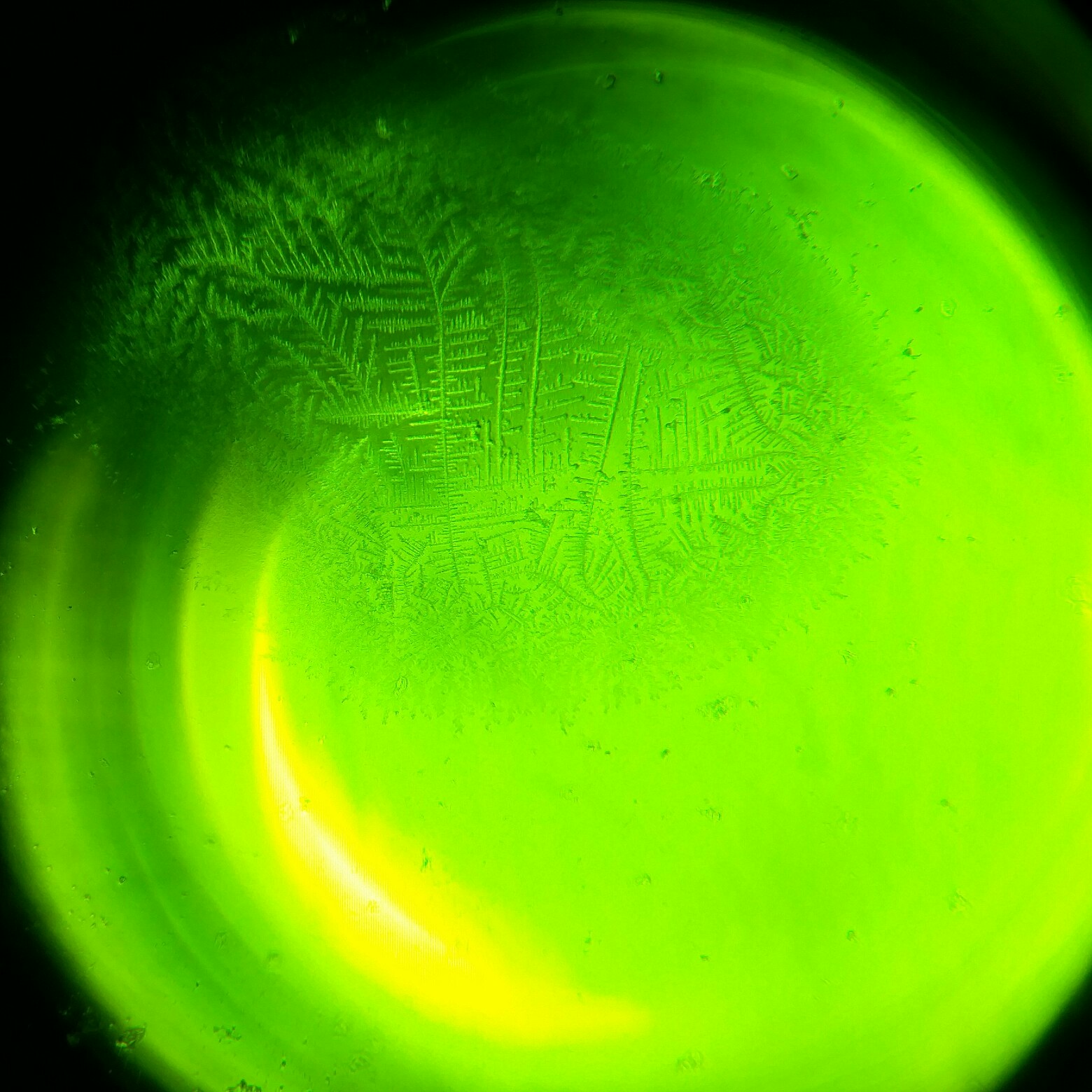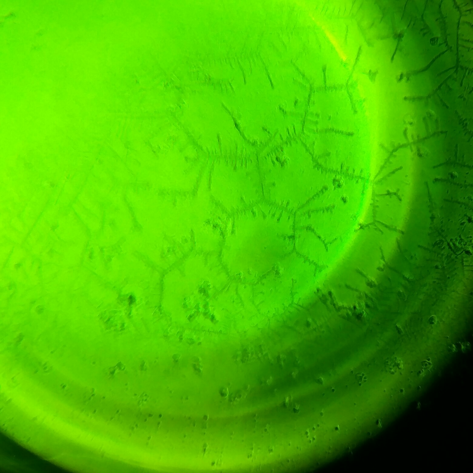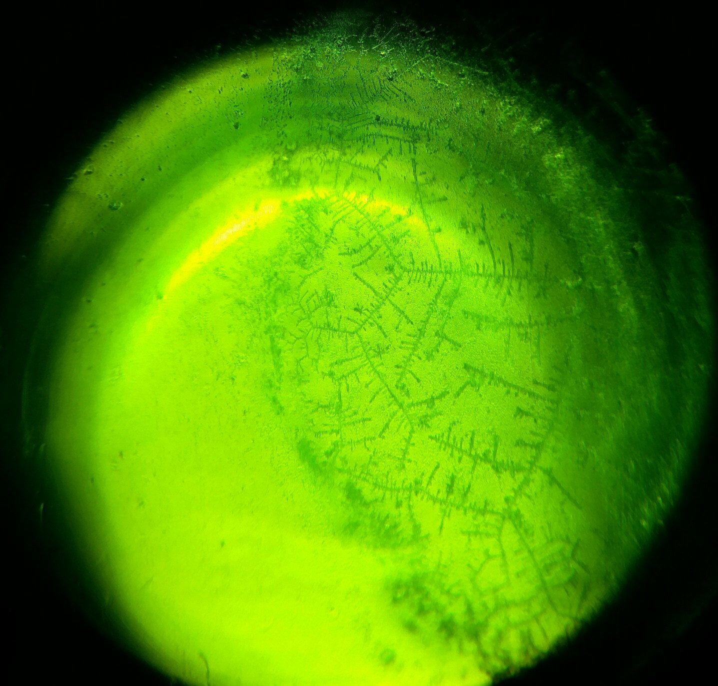 Mulla oli tänään tollanen. Liekö taas huonosti levitin näytteenvai onko muuten vähentynyt kuvio. Eilenhän oli puolet lasista kuvion peitossa.