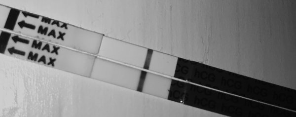 Vuoden yrityksen jälkeen vihdoin jotakin sellasta testissä, minkä voisi haamuksi laskea ilman toiveajattelua ja viivalaseja. Huomenna (lue illalla) uutta testiä ja siitä sitten myös kuva, kun en tuosta aamuisesta tajunnut ottaa ennen kuivumista. Sormet ja varpaat ristiin. Oireita menkkakivut, nännit kipeät ja selkä myös kipeä. Dpo 10-11. Ko 30/34.