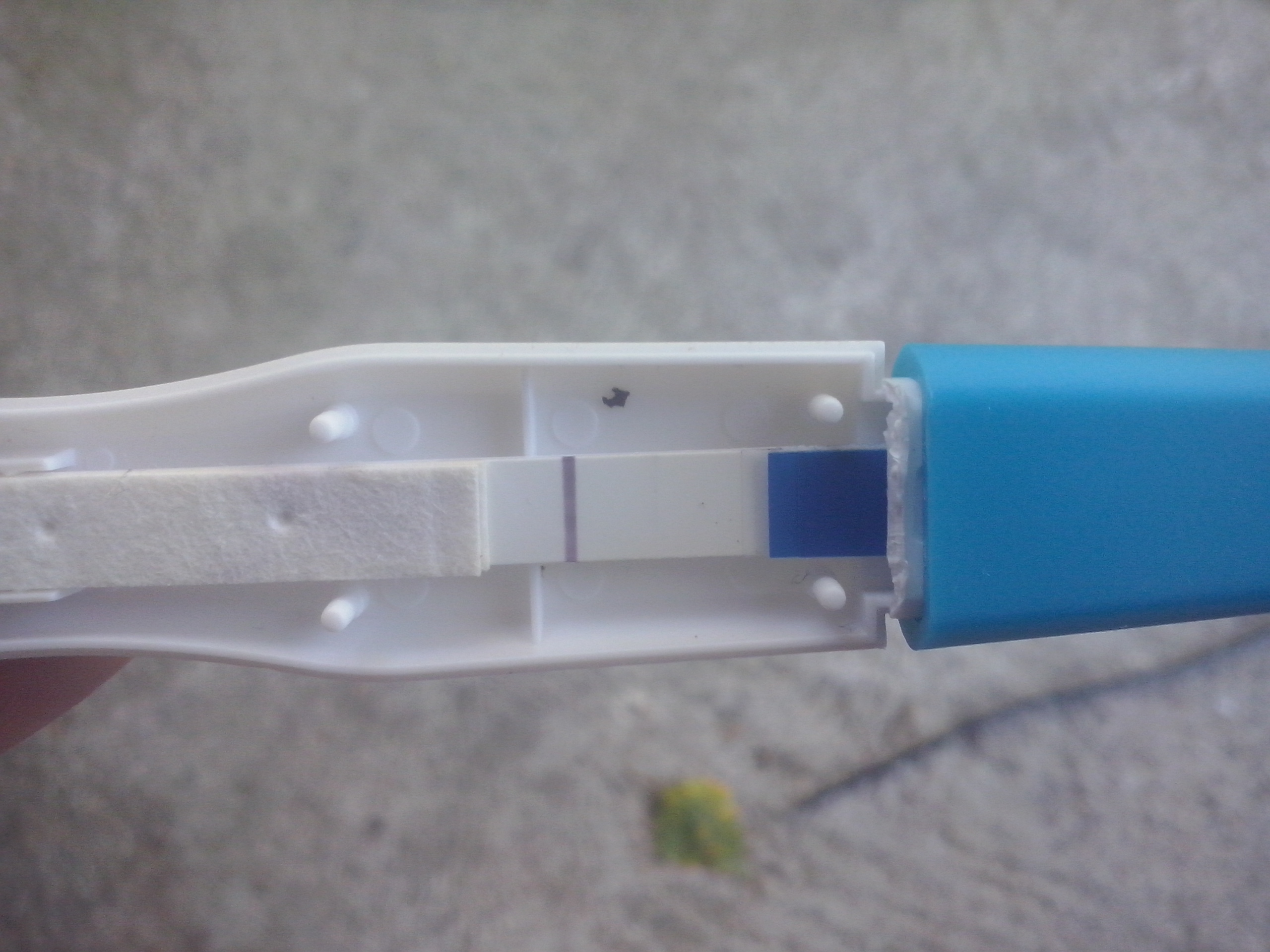 Muurahainen: löysitkin jo. Saattaa siinä jotain olla mutta testi on vielä märkä ja tuossa lasissa on joku heijastus edessä... hankalia nää puikko testit kuvata. Itse aukaisin testin ja katoin sitten :)