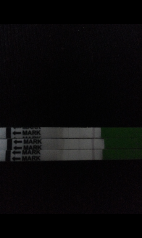 Äippä toi viivan vahvuus voi vaihdella kovastikkin. Viivat ei välttämättä vahvistu tasasesti kierron edetessä. Mullaki välillä oli viivaa ja välillä se hävis.. Mut sit ku se plussa tulee niin sen kyllä huomaa. Mulla se oli kirkuvan punanen. Voin ettii jos löytäsin kuvaa omasta plussa oviksesta. :)