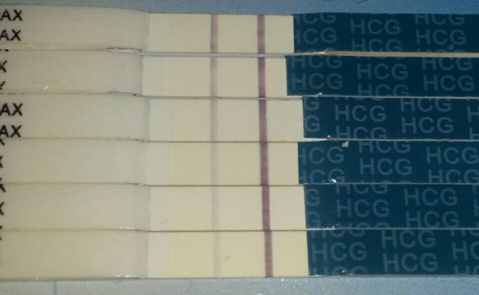 Heeeiiii, tää vielä ja sitte lopetan ketjun tukkimisen! Testiholisti pääsi siis todenteolla valloilleen sen ekan himmeän one step -haamun jälkeen ja tuli sitten "vahingossa" preg checkeillä testattua joka päivä :P Alin testi dpo 9 iltapäivä, muut järjestyksessä alhaalta ylös dpo 10-14 aamuisin.