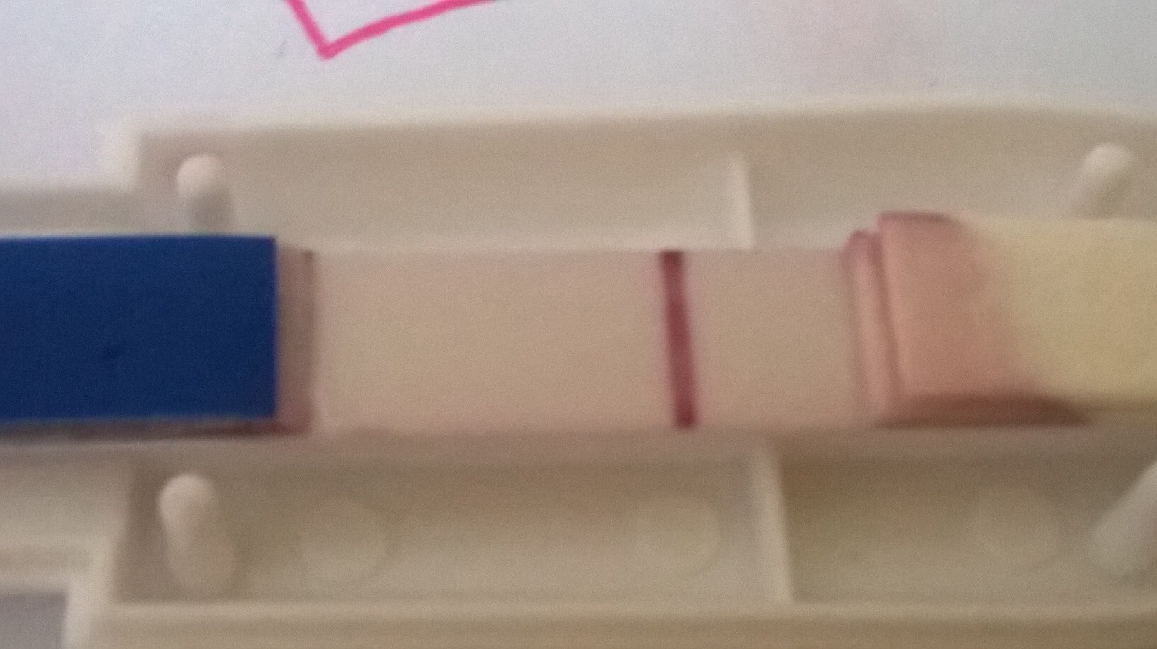 No päätinpä tehä testin. Ekaks siihen tuli se kontrolliviiva ja katoin, ettei toista viivaa näy. Aikaa oli mennyt melkein minuutti, ni huomasin haamun ja testiajalla 3 min, viiva oli selvempi! Olin ihan ällikällä lyöty, että voiko tää olla totta ku pupuilut jäi siihen kahteen kertaan luullun oviksen aikaa.( En siis tehny ovistestiä tässä kierrossa) Ja oviksen aikaan olin vielä Burana kuurilla polven takia oviksen aikaan!