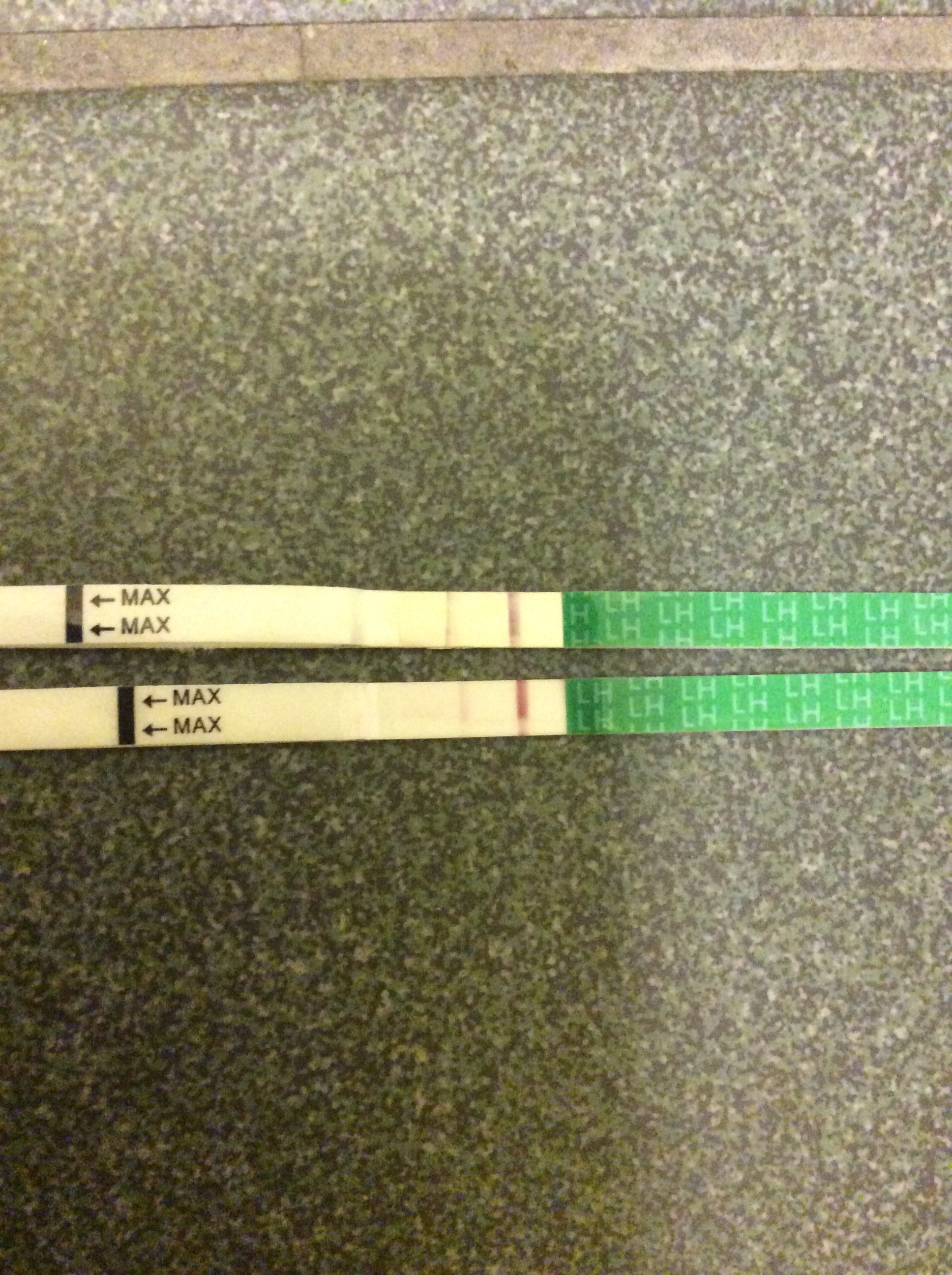 Tein taas tänään aamupäivällä ovistestin, ja se näyttää melko samalta kuin eilen illalla tehty. Liitän vielä teillekin kuvan :) voisiko ovulaatio olla vielä edessä päin? Eilen kp 20 ja tänään kp 21. Ylemmässä testissä eillinen tulos, alempi tämänpäiväinen.