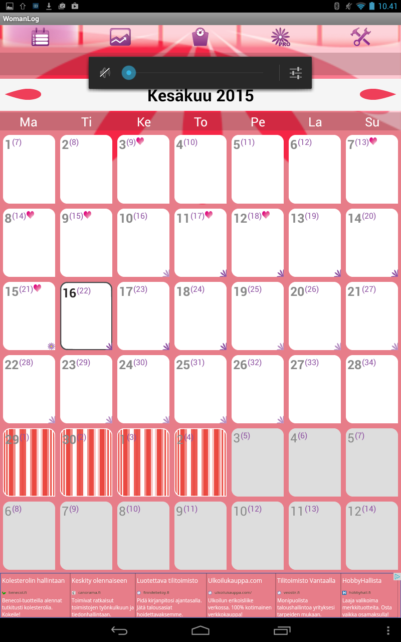 Tossa esimerkkikuvaa womanlogista. Mä en käytä tota hirveesti. Merkkailen seksin määrän ja tarkkailen kiertoa. Monilla on paljon enemmän kaikkea tossa :D