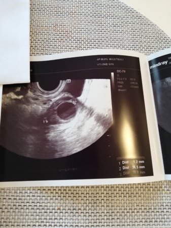 Endometrium tasainen kaunis triple layer 8,8mm. Molemmat ovariot kooltaan ja rakenteeltaan norm. Näköiset. Oikea ovario 37x30 mm, siinä komea simplex rakkula 21mm,sopisi preovulatoriseksi follikkeliksikin.