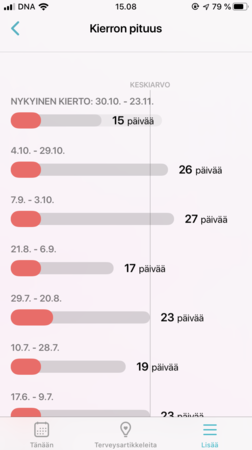 Olisko tästä jotain apua? Mietin just jokupäivä noita vaalempia lehtiä mitä itelle on tulluHei Flo käyttäjät! Laskeeko toi sovellus mulle ovulaatioajankohdan kiertojen keskiarvon perusteella? Koska tosta toisesta kuvasta näkee hyvin sen miten kierrot tasoittuneet kun lopetin pillerit.