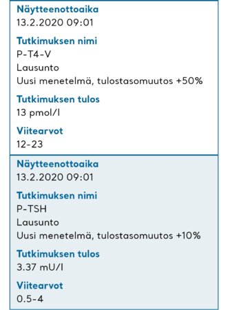 Ei mullakaan kyllä oikein oireita oo... Paitsi no kylmä mulla on lähes aina ja välillä väsymystä. Tuo väsymyksen arviointi on vaan aika hankalaa, kun ei ole oikein mitään mihin verrata. Mikä on normaali määrä väsymystä? Ei mulla ole ongelmaa jaksaa käydä töissä ja jaksan harrastaa liikuntaakin, mutta välillä on aika vetämätön olo eikä kauheasti mitään ylimääräistä meinaa aina jaksaa. Välillä on kyllä toisaalta hyvinkin energinen olo.