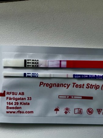 Olen samaa mieltä,että viivan vahvuudella ei ole merkitystä niinhän lukee jo pakkauksen ohjeessakin. Ja joillakin se hCG erittyy hitaammin. Tässä nyt vaan ihmettelevät miksi en soita jo neuvolaan. En tuollaisella viivalla viitsi lähteä vielä soittelemaan. Odottelen mihin suuntaan kehitttyy. Onhan tässä monta vaihtoehtoa? Mutta sen tiedän että mun kystat jotka oli pari vuotta sitten ei tehneet plussaa raskaustestiin. Kivuliaat oli kun puhkesi. No ainoa mikä hämää itseäni on se että tuo viivaa katosi välissä. Ja sitten pidin pidemmän tauon jokapv testailussa ja aloin pahoinvoinnin takia testaamaan uudelleen. Se miksi se katosi on mysteeri. Tai sitten näen väärin,eikä tuossa mitään viivaa olekaan? Tein aamulla saman testin,ja sain testiajalla sen toisen viivan taas liuskaan. Katosi. Samanlaisesti herkkä testi,vaaleenpunanen viiva tuli alle 5 minuutissa.Mikäli nämä on rfsu:n testejä ja kuvat otettu sen ajan sisällä mitä pakkaus sanoo niin selkeä plussahan tuo on ja neuvolaan soittaisin. En ota kantaa viivan vahvuuteen, sillä ei ole mielestäni merkitystä.