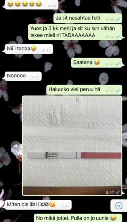 Oon tehny negatiiviset testit kp29 ja 30/26 ja ne oli ihan puhtaasti negat. Aattelin, että kroppa vaan pelleillee, luovuin jo toiveista, lähinnä vitutti, ku en voi saada menkkojakaan, roikun tällases välitilas. Alavatsakipua, närästystä, tissien arastelua ja runsasta valkovuotoo ja hikoilua ollu koko ajan, minusta kuitenki vähenemäänpäin noitten negojen jälkeen.