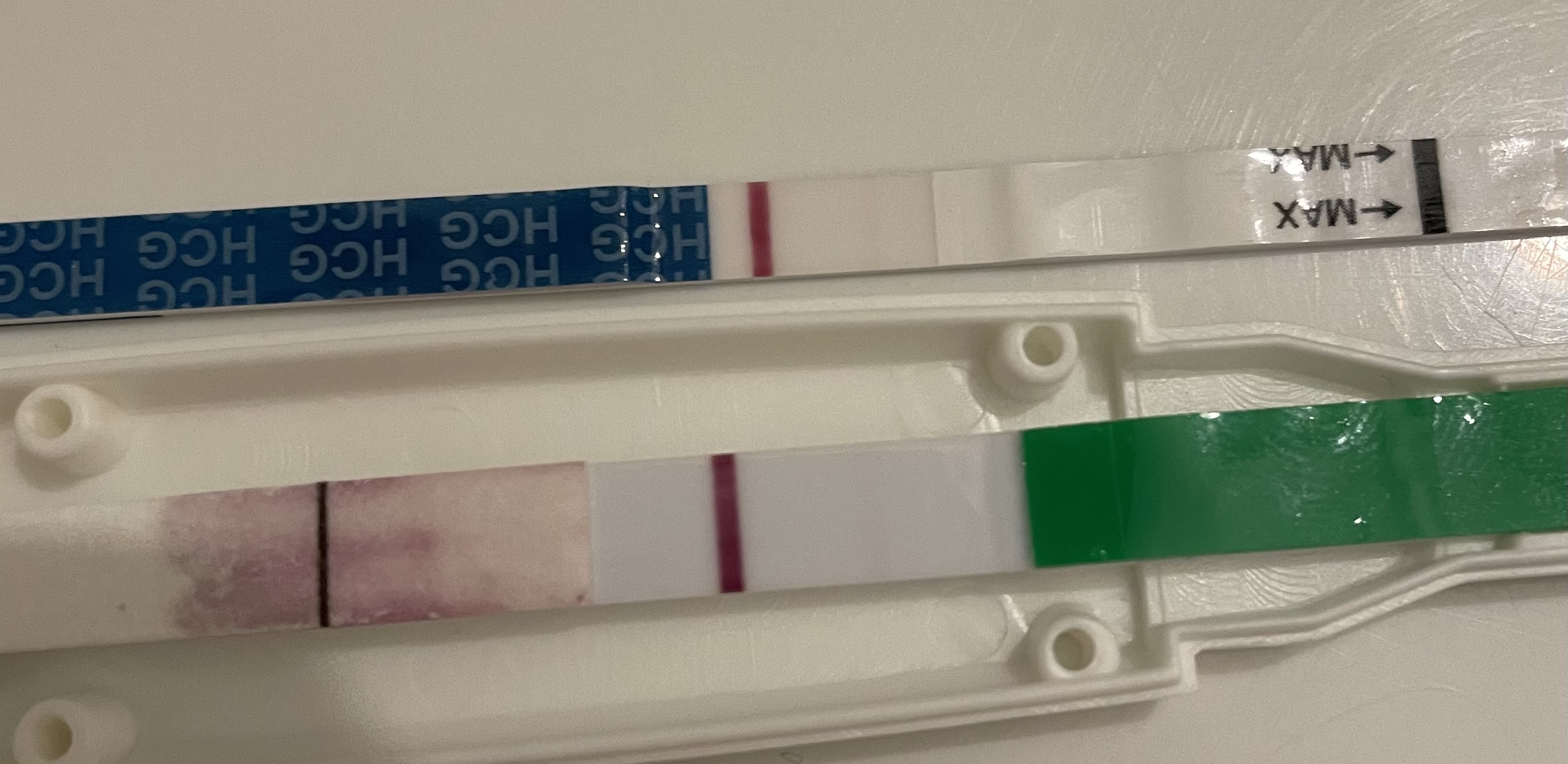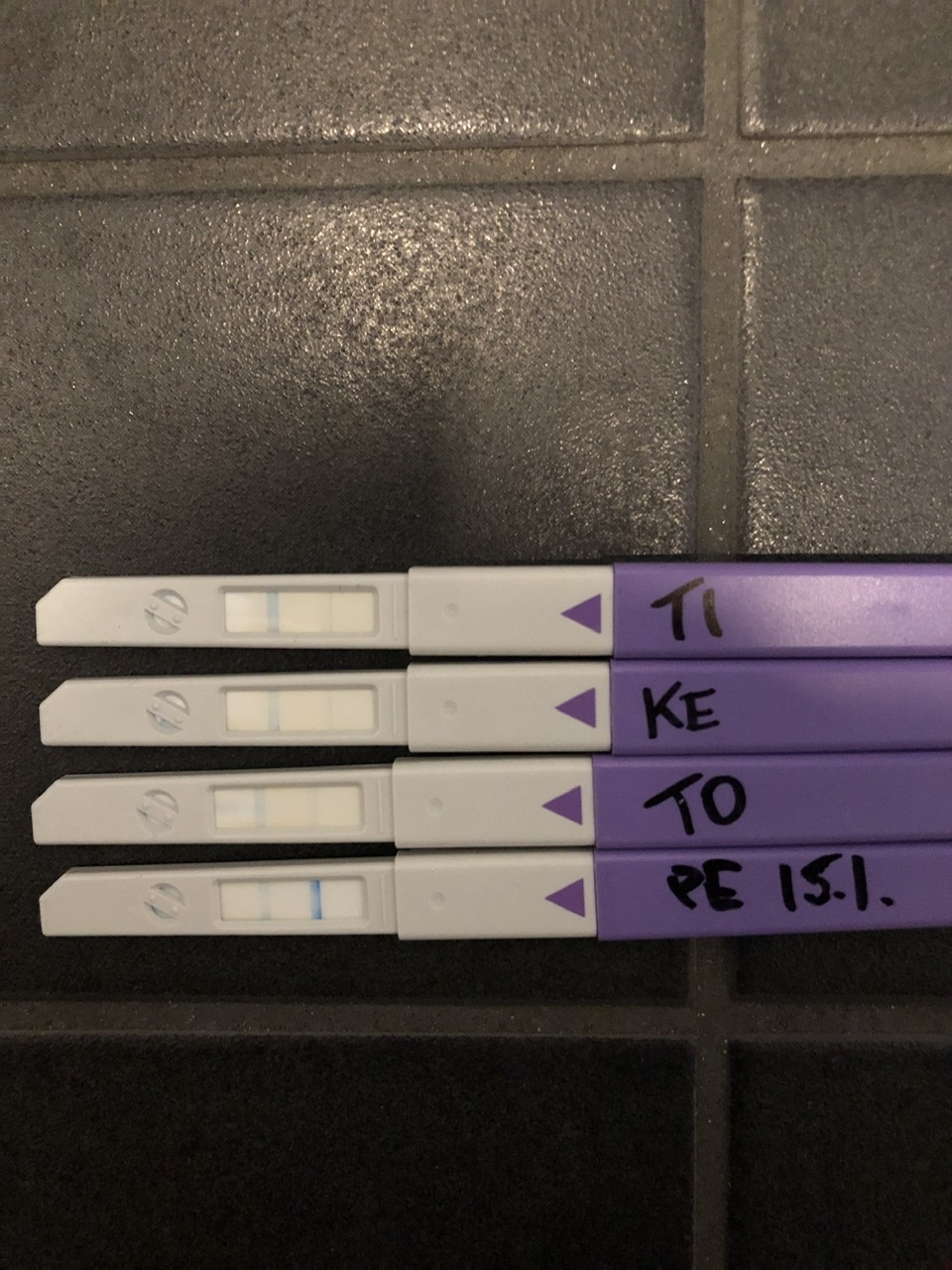 Se testi voi (valitettavasti) vilkutella pitkäänkin, mikä toki tympeää kun tikkuja kuluu :shifty: liitteenä kuva mun testeistä, joissa viimeinen se pysyvä hymy (ja tärppikierto), samanlaiset oli edellisessäkin. Toki muut tikut vähän kuivuneita jo tuossa mutta kuitenkin. Eli kun tulee se pysyvä hymy niin tosi selkeä on se toinen viiva verrattuna aiempiin. Mutta tosiaan, viivoja ei saisi virallisesti kai yrittää tulkita… :joyful: