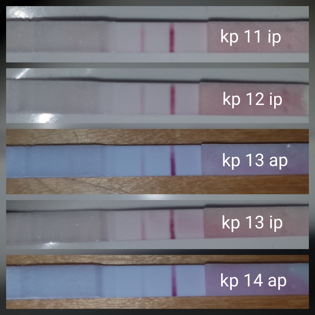 Missähän ovis luuraa.. Pahoittelut, on hieman sekavat kollaasit. Parilla eri testillä olen tikuttanut ovista aamupäivällä ja iltapäivällä. Mahassa kipristelyitä oli koko alkuviikon ja kp 11 aloin testaamaan. Nyt on kp 14 ja viivat näyttäisi haalenevan. :sorry: Vv ollut tosi vähäistä. Turhauttaa, kun välillä olen saanut juuri tällä testillä hienoja lh-huippuja bongattua. :sad001