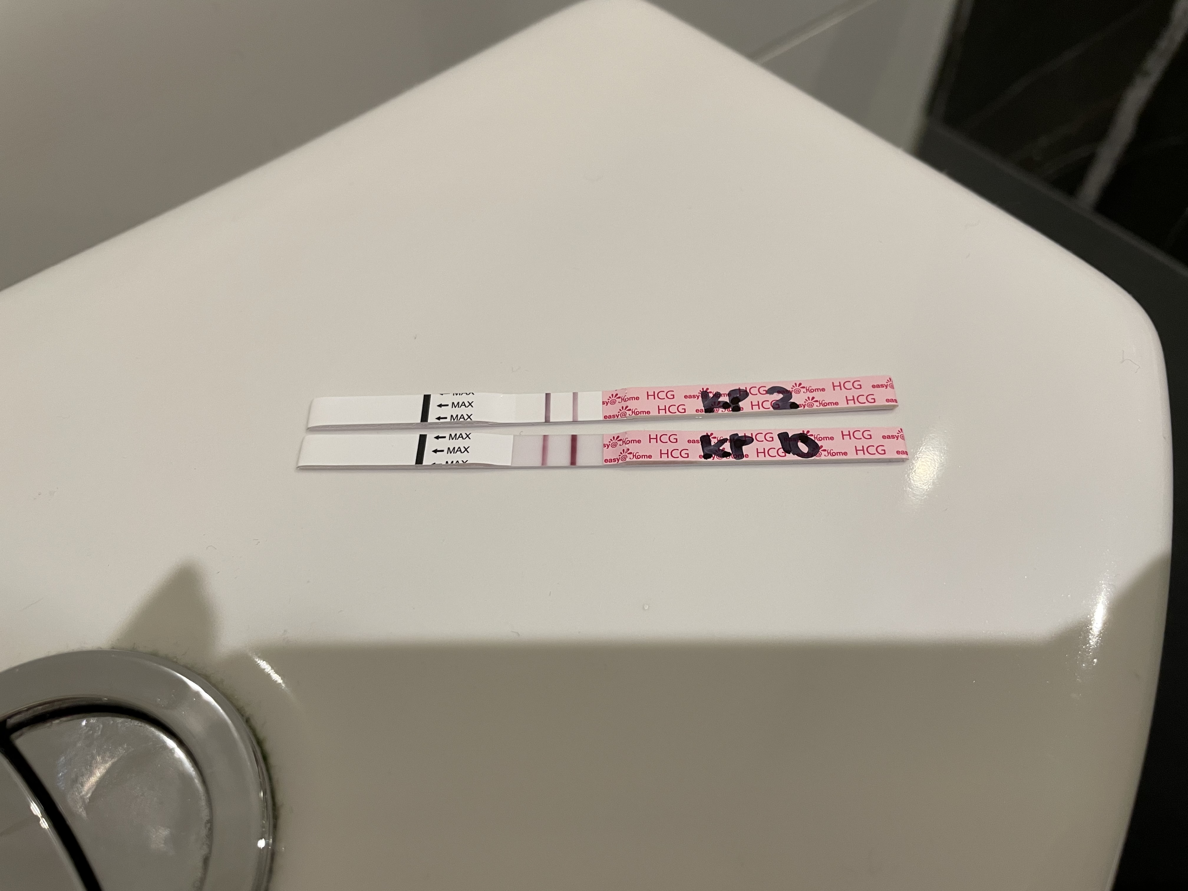 Täällä kp11 km vuodon alusta laskettuna. Vielä hieman tiputtelee satunnaisesti ja testi edelleen selkee positiivinen, tosin hiipumaan päin verrattuna viime viikkoiseen. Viime viikolla testiviiva oli ihan kirkuvan punainen vs kontrolli, nyt testiviiva kontrollia haaleampi jo. Viime perjantaina (kp3) HCG oli vielä 15000, luulen että edelleen vielä sadoissa ainakin. Maanantaina onneksi ultra, jossa tarkastetaan onko kaikki tyhjentynyt hyvin.
