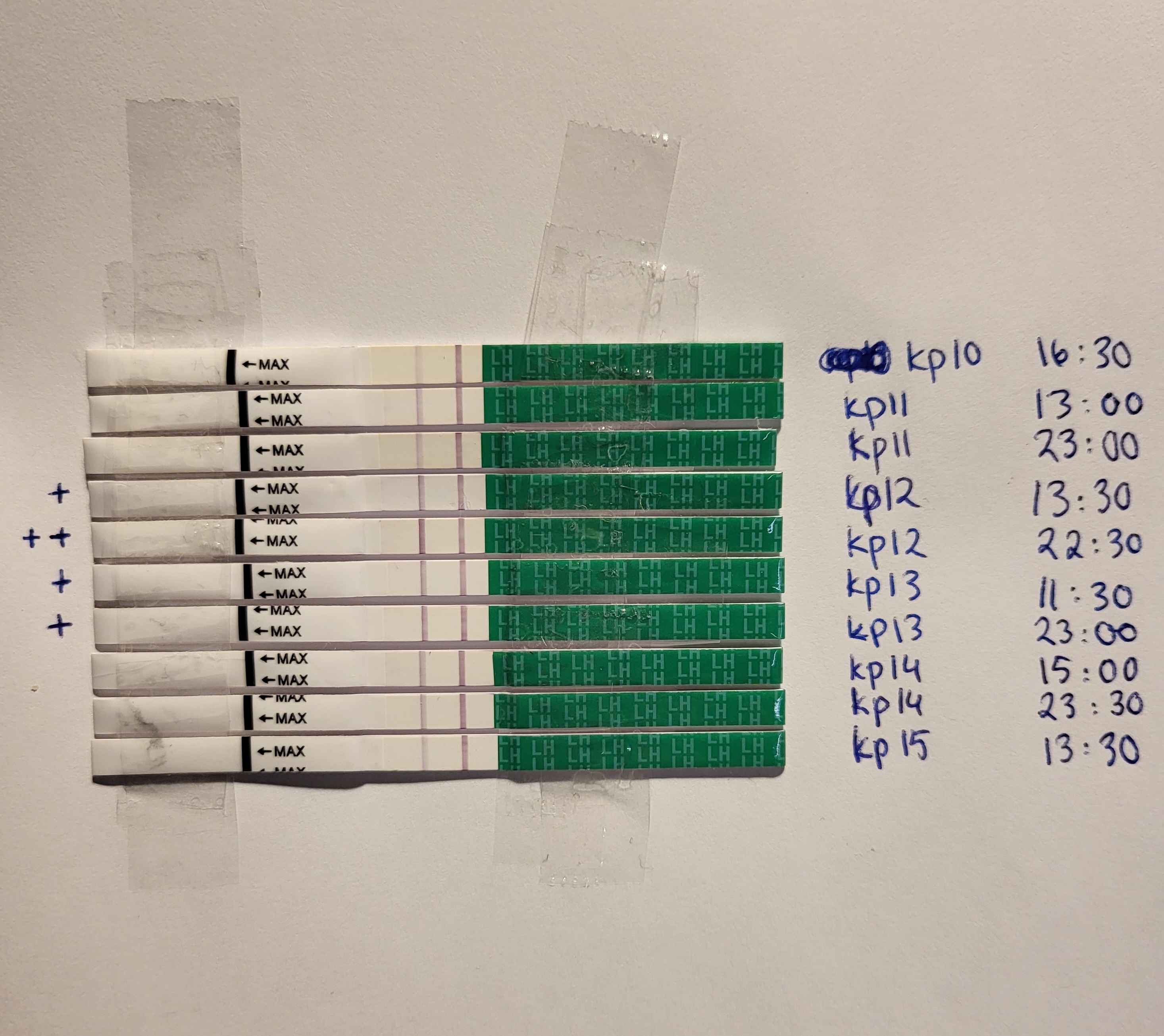 Tikuttelin ovista nyt ekaa kertaa, ihan mielenkiintoista! Selkeä piikki kp12 illalla, mutta kaikki noi kp12 ja kp 13 testit Natural Cyclesin sovellus ilmoitti plussaksi. Limoja en ite havainnut tällä kertaa ollenkaan, mutta voi olla, että päivittäisen tallettelun vuoksi jäi vaan havaitsematta.. 🤣 munasarjoissa oli selkeää tuntemusta kp13 illalla.