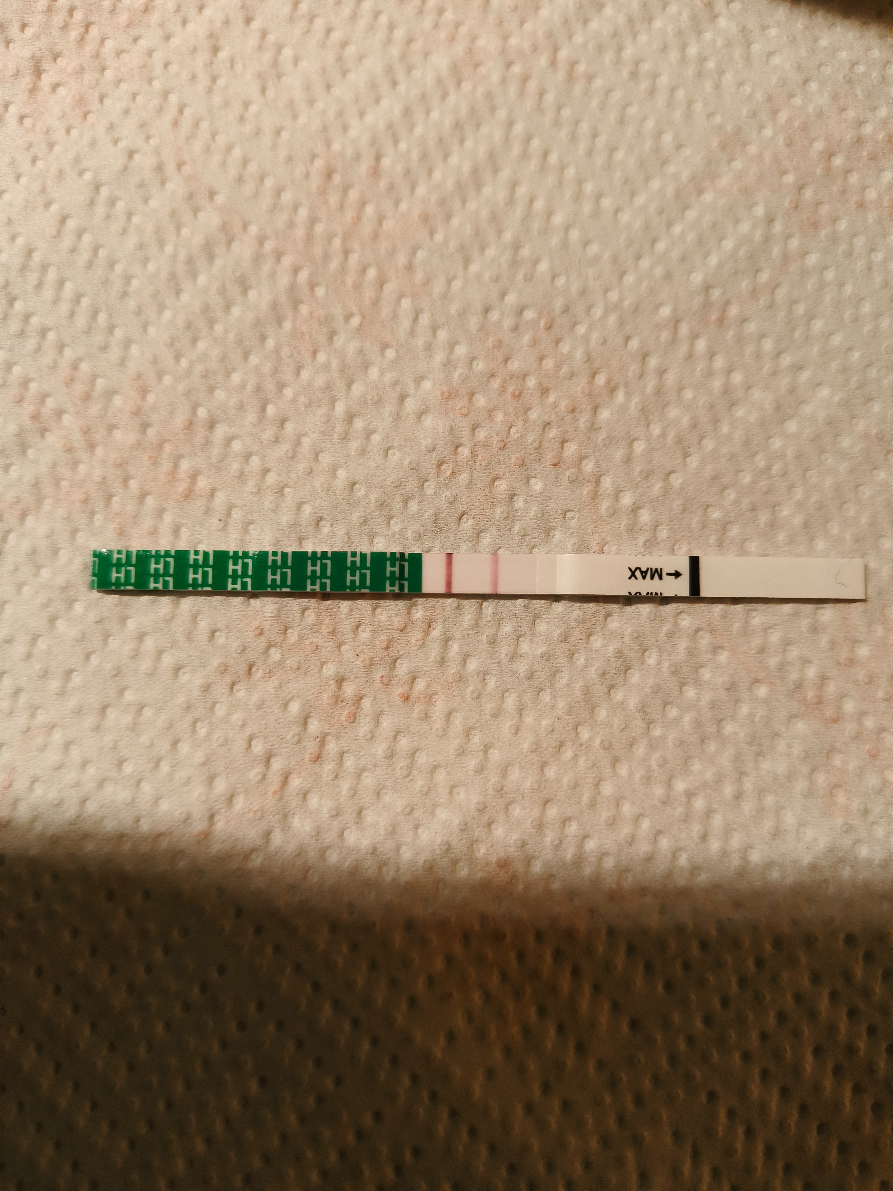 Ennen reissua tein testin ja oli hailakka viiva, reissussa oli olo että saattaisi olla ovis mutta epävarma, ei vaan ollu testejä mukana. Nyt sit kotona testailin ja ihan olematon viiva. Sentään vissin jotenkin arvo muuttunut jossain kohtaa sillä otin ns. Perustasotestin aikaisemmin ja silloin oli ihan puhdas nega.