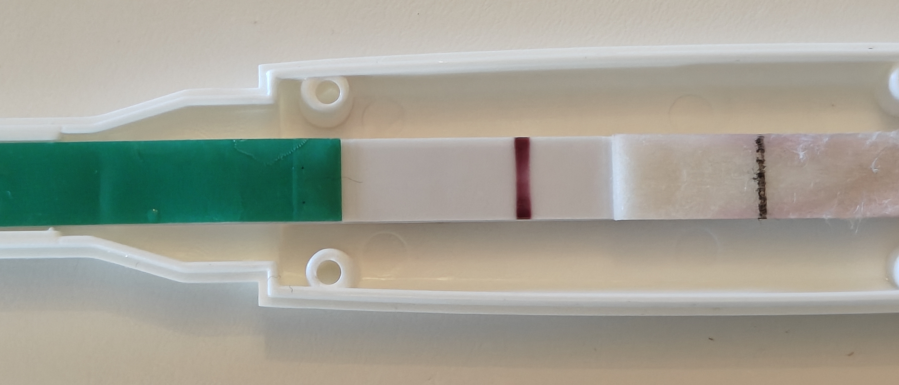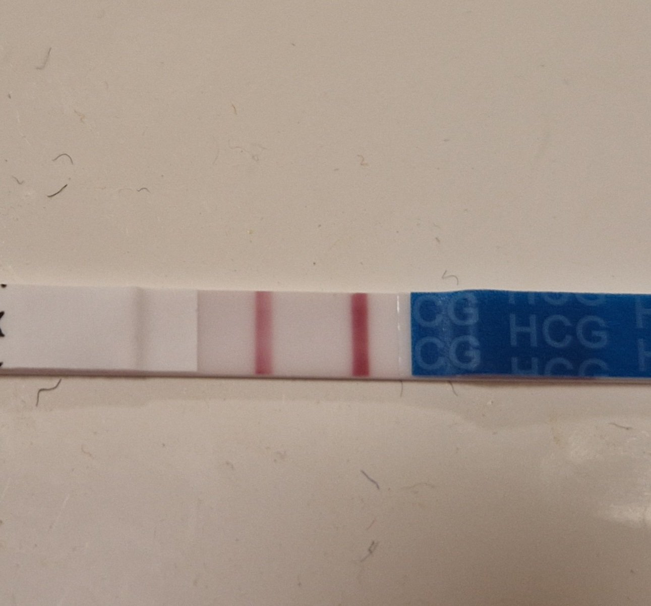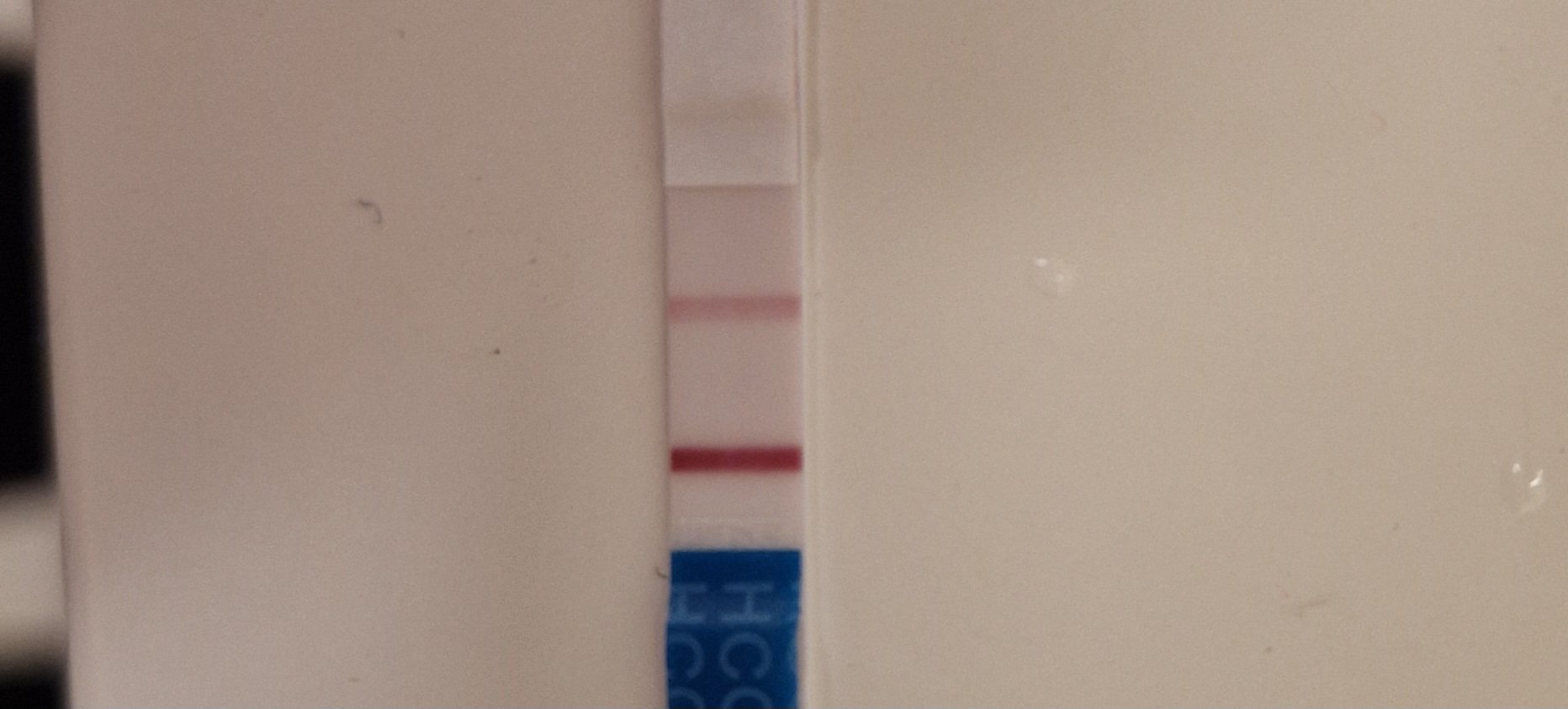 Kirjoittelen täällä taas. Eli tosiaan sain keskenmenon 2.6 ja hcg.tä kontrolloitiin aina siihen asti, että oli alle 2. Jälkivuoto loppui 20.6. ja tiputteluvuoto alkoi 3.7-8.7 sekä 30.7, joka jatkui aina 10.8 asti, jolloin soitin naistentautien päivystykseen. He pyysivät, että menisin käymään. Ultrassa todettiin limakalvon paksuus 6.6mm hieman homogeeninen sekä munasarjassa nesterakkula. Terolutit kantoon ja odottelemaan vuotoa. Teroluttien tarkoitus oli nollata kierto. Aloitin terolutit heti 10.8 ja söin niitä paina 17.8 asti. 11.8 tiputtelu vuoto loppui joka oli heinäkuun lopussa alkanut. Mutta taas alkoi pyyhintävuoto 14-15.8 joka jatkui pelkkänä pyyhintävuotona 20.8 asti ja jonkin verran menkkakramppeja, muttei vuotoa näkynyt tuona päivänä. Eilen illalla 21.8 taas alkoi pieni ruskea tuhruvuoto, joka jatkuu edelleen, hyvin niukkaan ja ruskeana. Olen tietenkin ihan ymmälläni, mistä tää johtuu. Toki tiedän, että raskaus olisi mahdollista, sillä emme ole lopettaneet yrittämistä Teroluttien aikana, mutta tänään tehtyäni raskaustestin en ole enään varma, näenkö omiani vai olenko oikeasti voinut raskautua Teroluttien aikana. Laitan kuvan alemmas. Näkeekö kukaan haamulaisen haamulaista?